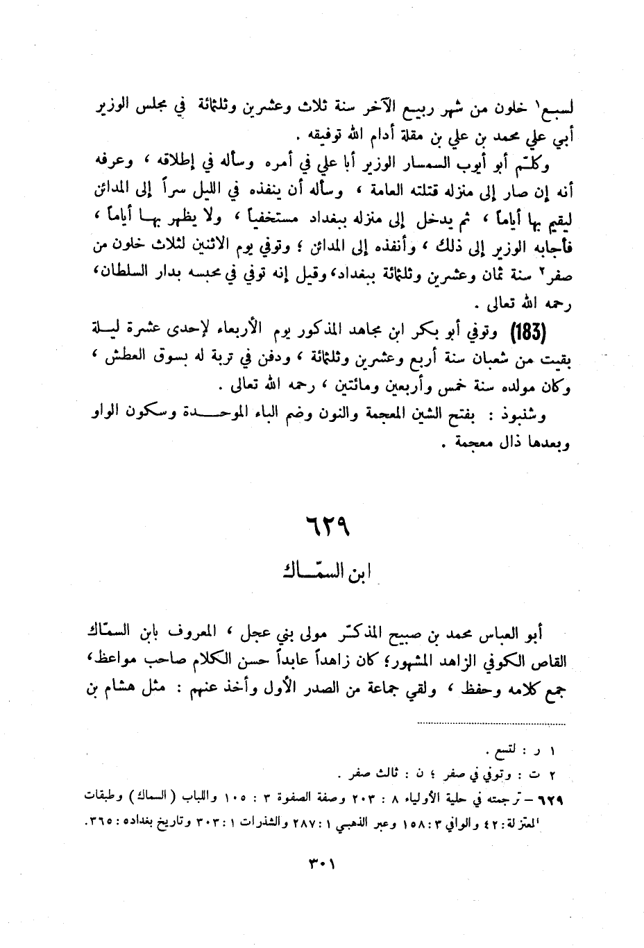 (3) ترجمته في حلية الأولياء 8: 203 وصفة الصفوة 3: 105 واللباب (السماك) وطبقات المعتزلة: 42 والوافي 3: 158 وعبر الذهبي 1: 287 والشذرات 1: 303 وتاريخ بغداد 5: 365.