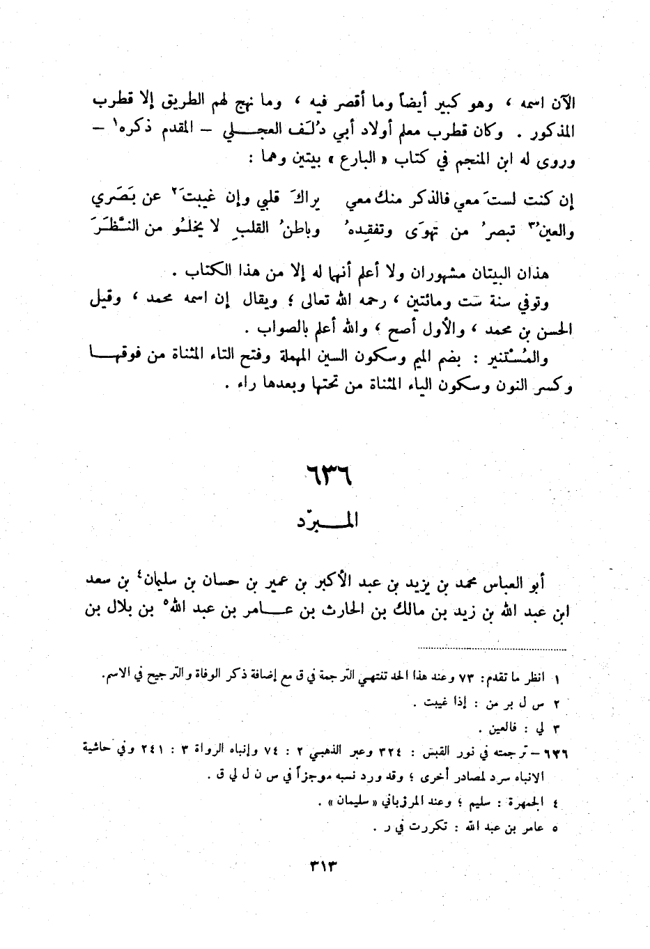 أبو العباس محمد بن يزيد بن عبد الأكبر بن عمير بن حسان بن سليمان (5) بن سعد بن عبد الله بن زيد بن مالك بن الحارث بن عامر بن عبد الله (6) بن بلال بن