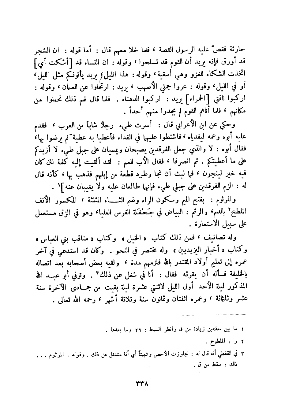 (3) في القفطي أنه قال له: تجاوزت الأحص وشبيثاً أي أنا مشتغل عن ذلك. وقوله: المرثوم ... ذلك: سقط من ق.
