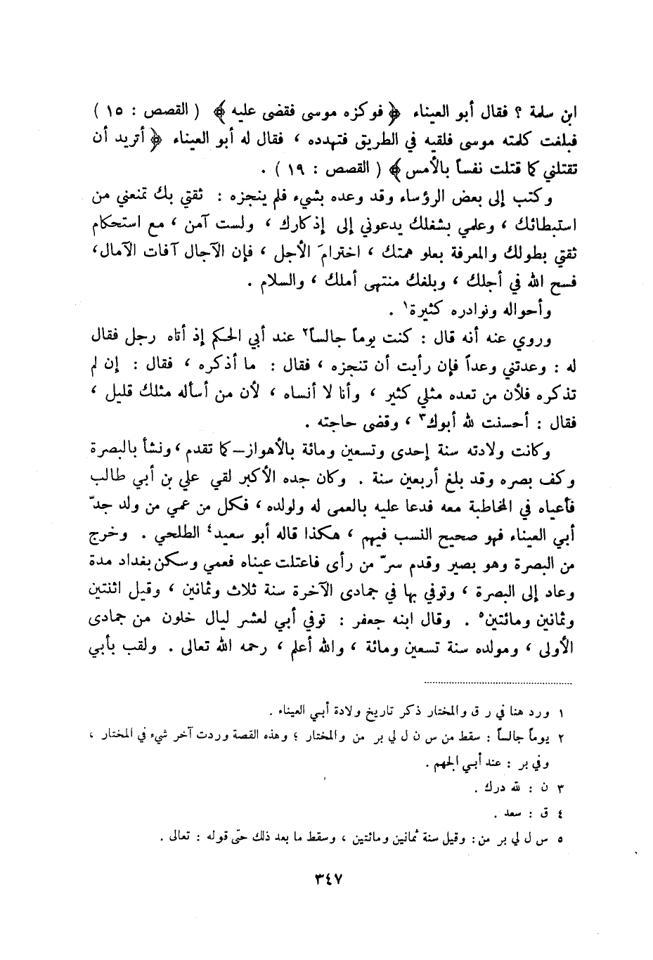 (1) ورد هنا في ر ق والمختار ذكر تاريخ ولادة أبي العيناء.