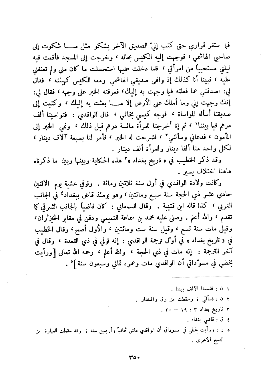 (5) ر: ورأيت بخطي في مسوداتي أن الواقدي عاش ثمانياً وأربعين سنة؛ وقد سقطت العبارة من النسخ الأخرى.