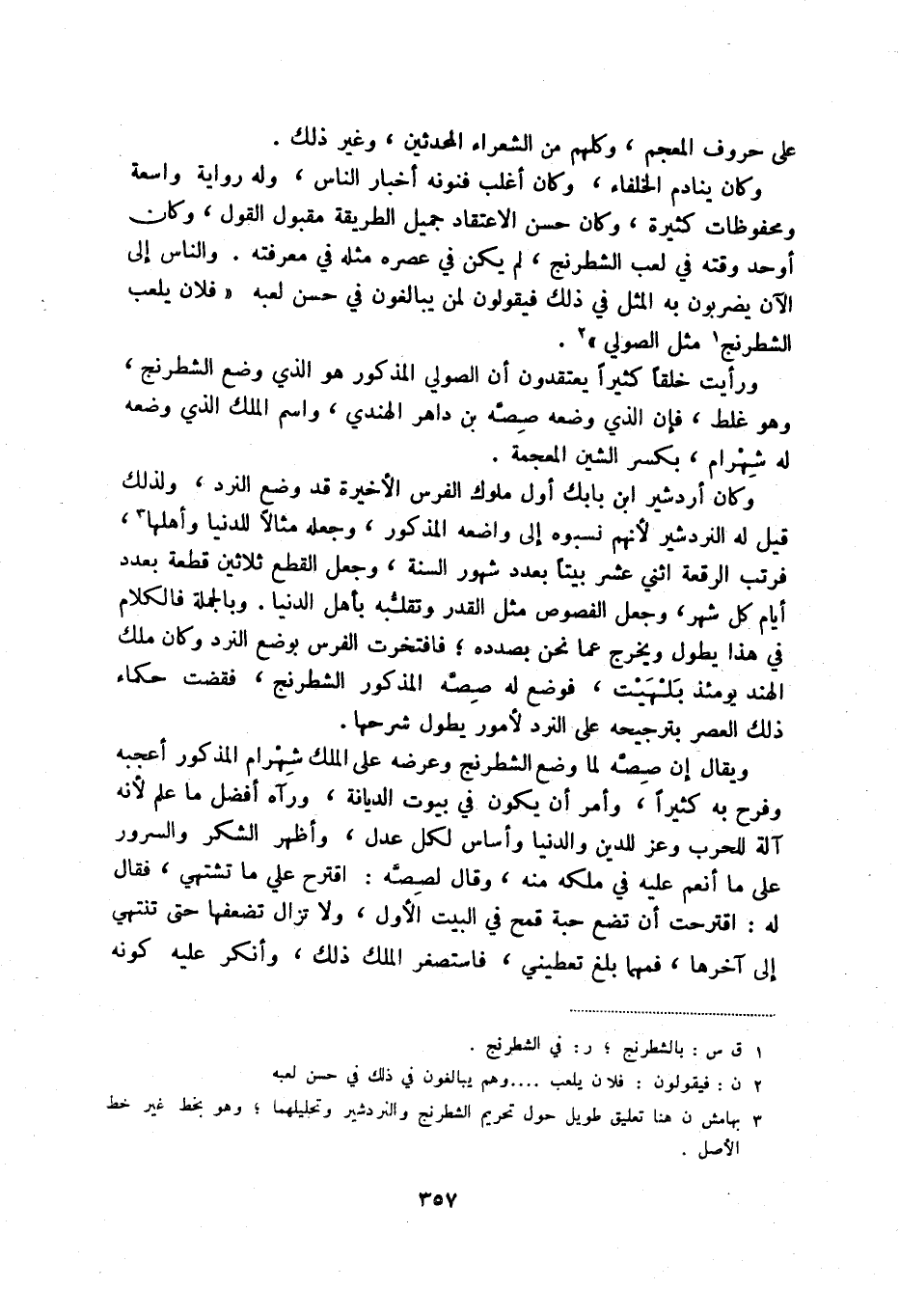 (3) بهامش ن هنا تعليق طويل حول تحريم الشطرنج والنردشير وتحليلهما؛ وهو بخط غير خط الأصل.