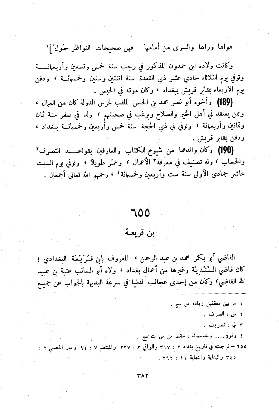 (5) ترجمته في تاريخ بغداد 2: 317 والوافي 3: 227 والمنتظم 7: 91 وعبر الذهبي 2: 345 والبداية والنهاية 11: 292.