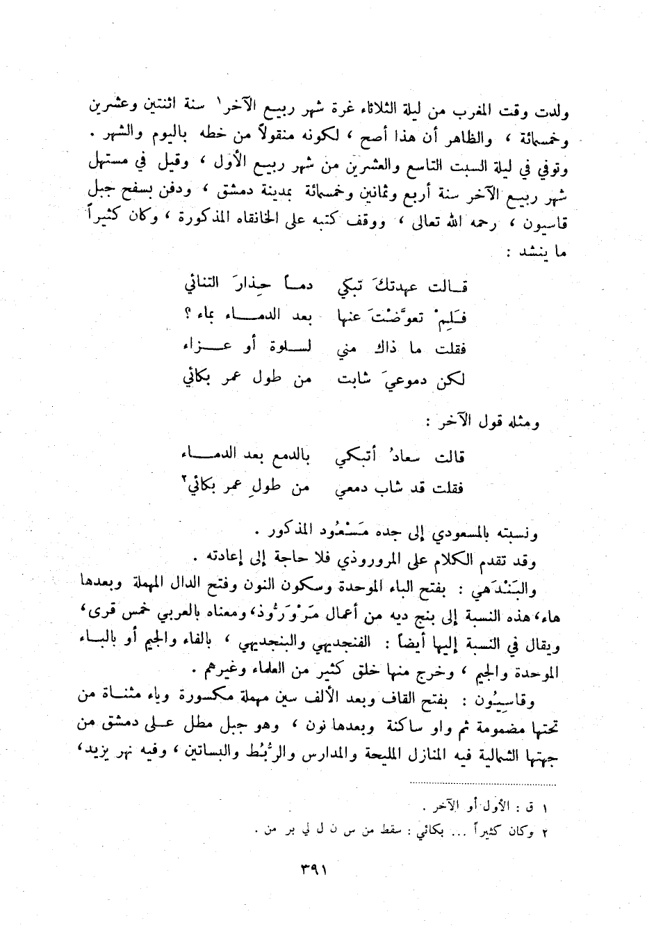 فقلت قد شاب دمعي ... من طول عمر بكائي (2) ونسبته بالمسعودي إلى جده مسعود المذكور.