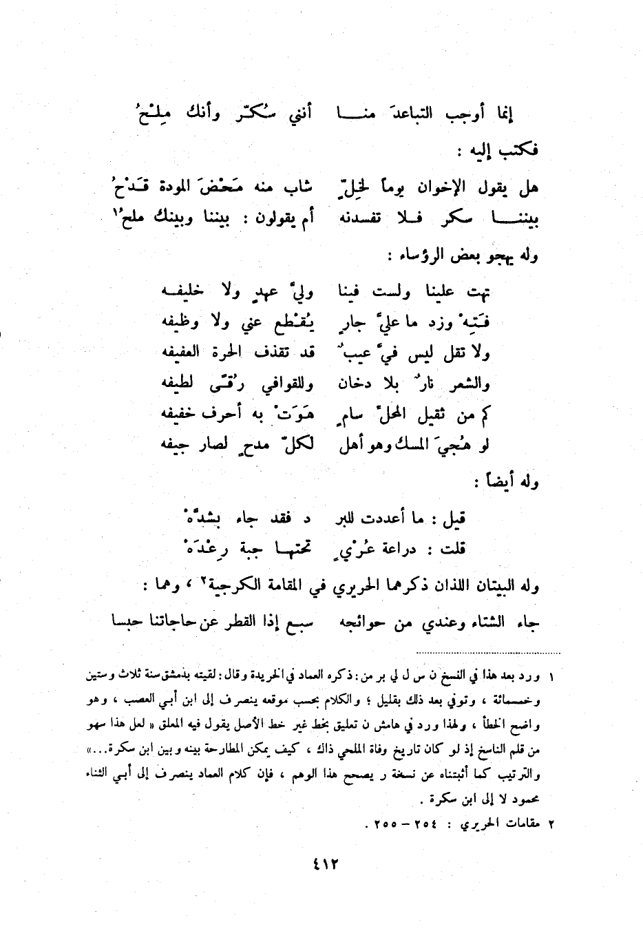 قلت: دراعة عري ... تحتها جبة رعده وله بيتان اللذان ذكرهما الحريري في المقامة الكرجية (2) ، وهما: