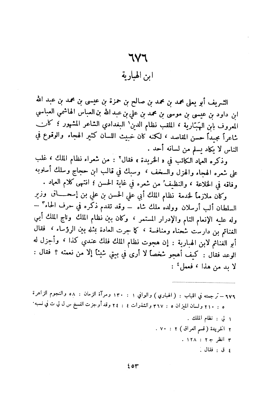 (1) ترجمته في اللباب: (الهباري) والوافي 1: 130 ومرآة الزمان: 58 والنجوم الزاهرة 5: 210 ولسان الميزان 5: 367 والشذرات 4: 24 وقد أوجزت النسخ س ل لي ت في نسبه.