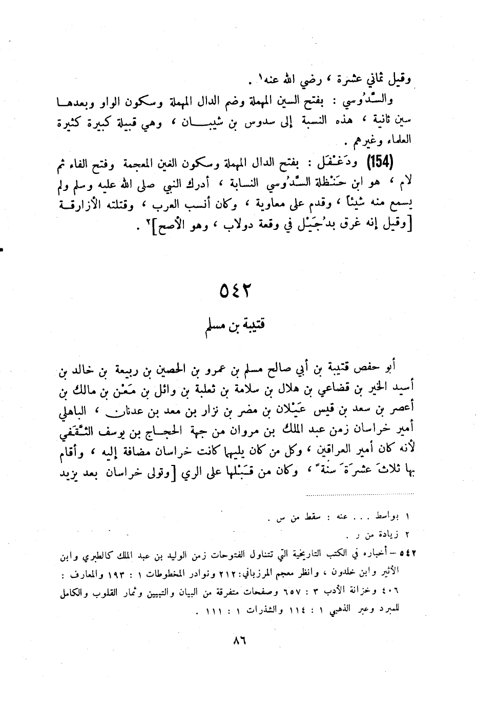 (154) ودغفل: بفتح الدال المهملة وسكون الغين المعجمة وفتح الفاء ثم لام، هو ابن حنظلة السدوسي النسابة، أدرك النبي صلى الله عليه وسلم ولم يسمع منه شيئا، وقدم على معاوية، وكان أنسب العرب، وقتلته الأزارقة [وقيل إنه غرق بدجيل في وقعة دولاب، وهو الأصح] (2) .