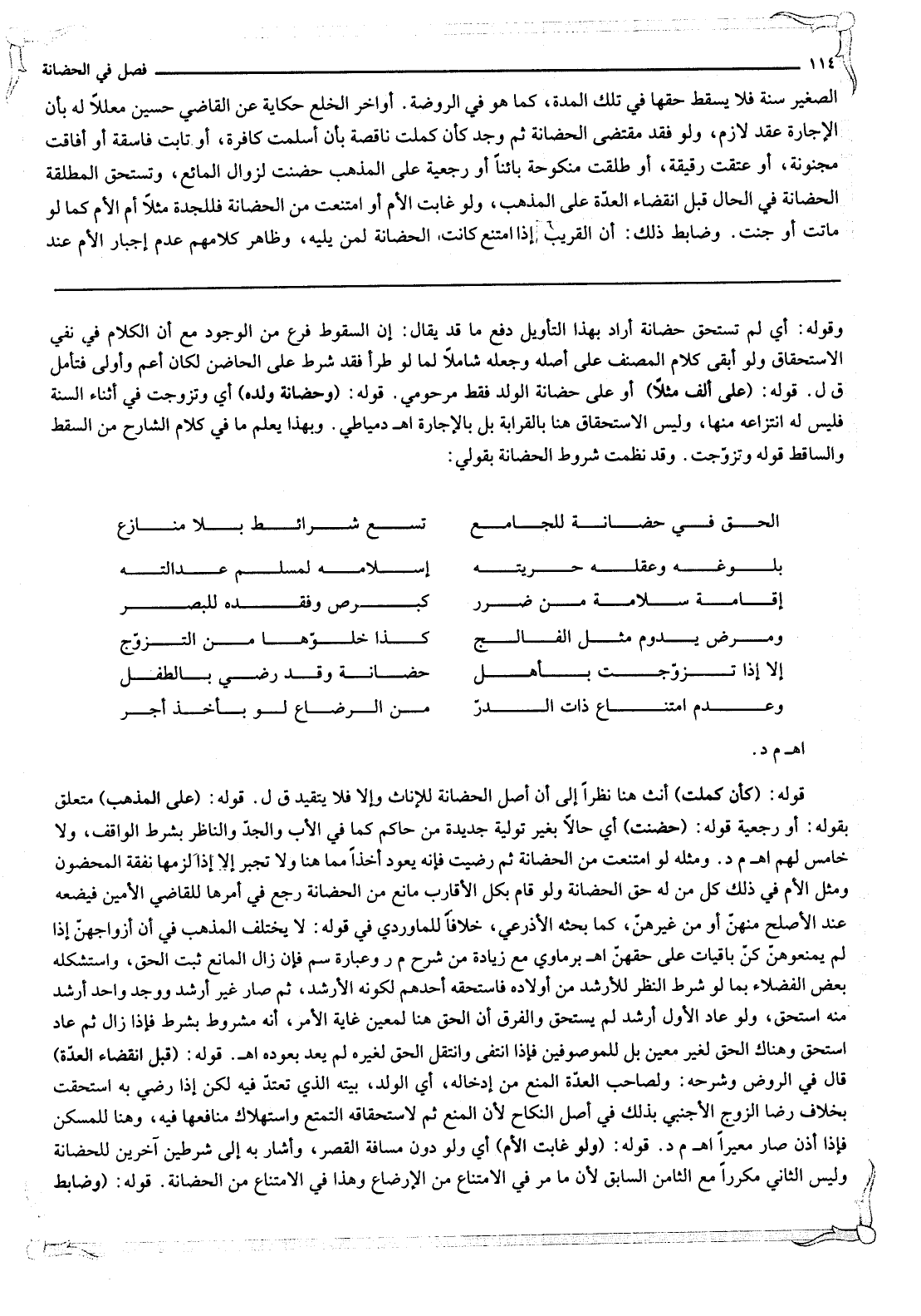 وَقَدْ نَظَمْتُ شُرُوطَ الْحَضَانَةِ بِقَوْلِي