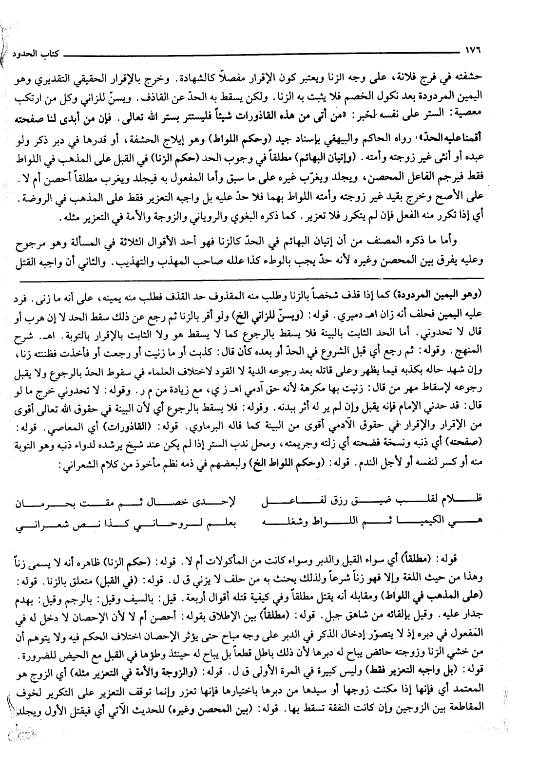قَوْلُهُ: (وَحُكْمُ اللِّوَاطِ إلَخْ) وَلِبَعْضِهِمْ فِي ذَمِّهِ نَظْمٌ مَأْخُوذٌ مِنْ كَلَامِ الشَّعْرَانِيُّ:
