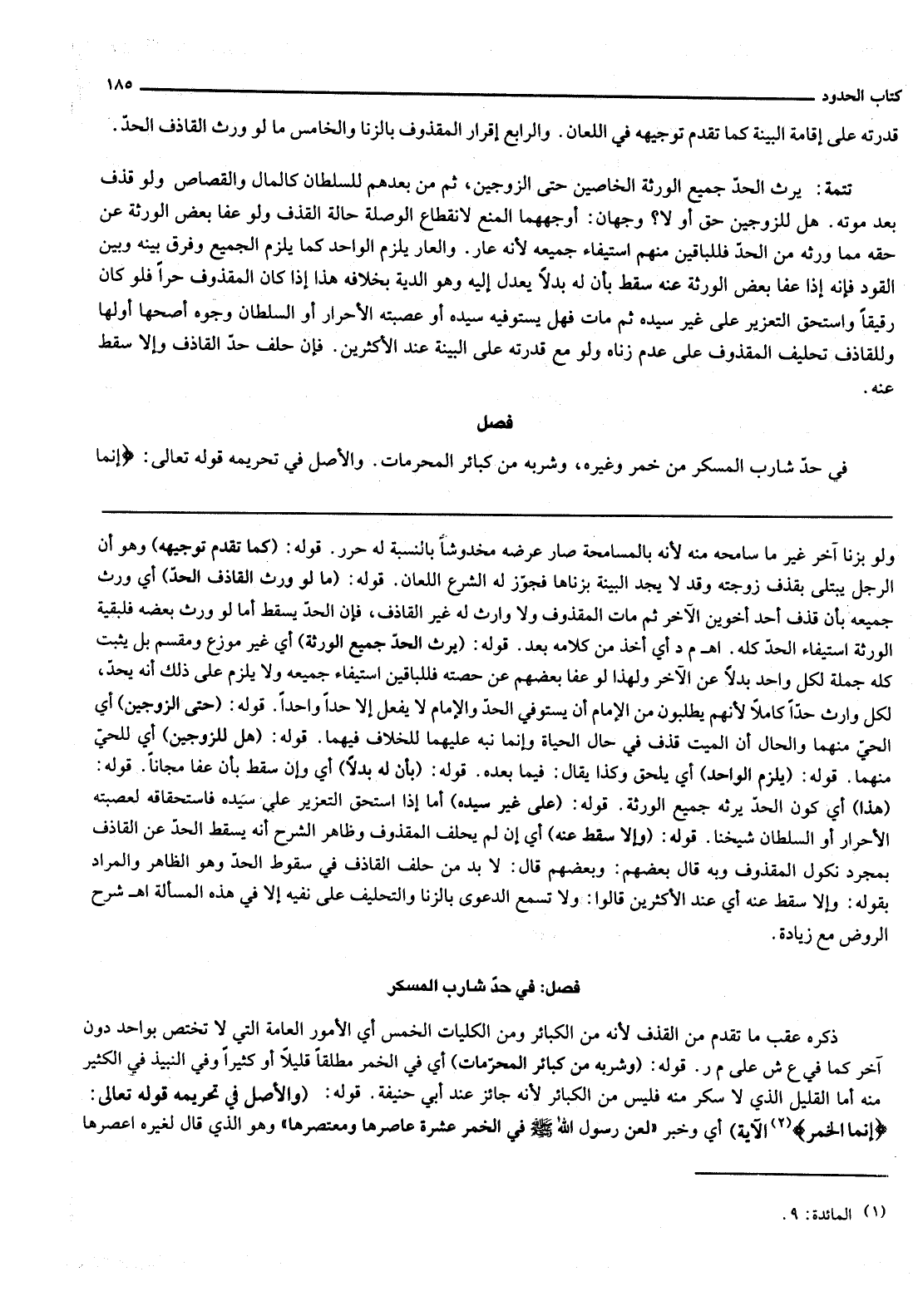 فَصْلٌ فِي حَدِّ شَارِبِ الْمُسْكِرِ مِنْ خَمْرٍ وَغَيْرِهِ، وَشُرْبُهُ مِنْ كَبَائِرِ الْمُحَرَّمَاتِ. وَالْأَصْلُ فِي تَحْرِيمِهِ قَوْله تَعَالَى: {إِنَّمَا الْخَمْرُ وَالْمَيْسِرُ} [المائدة: 90]