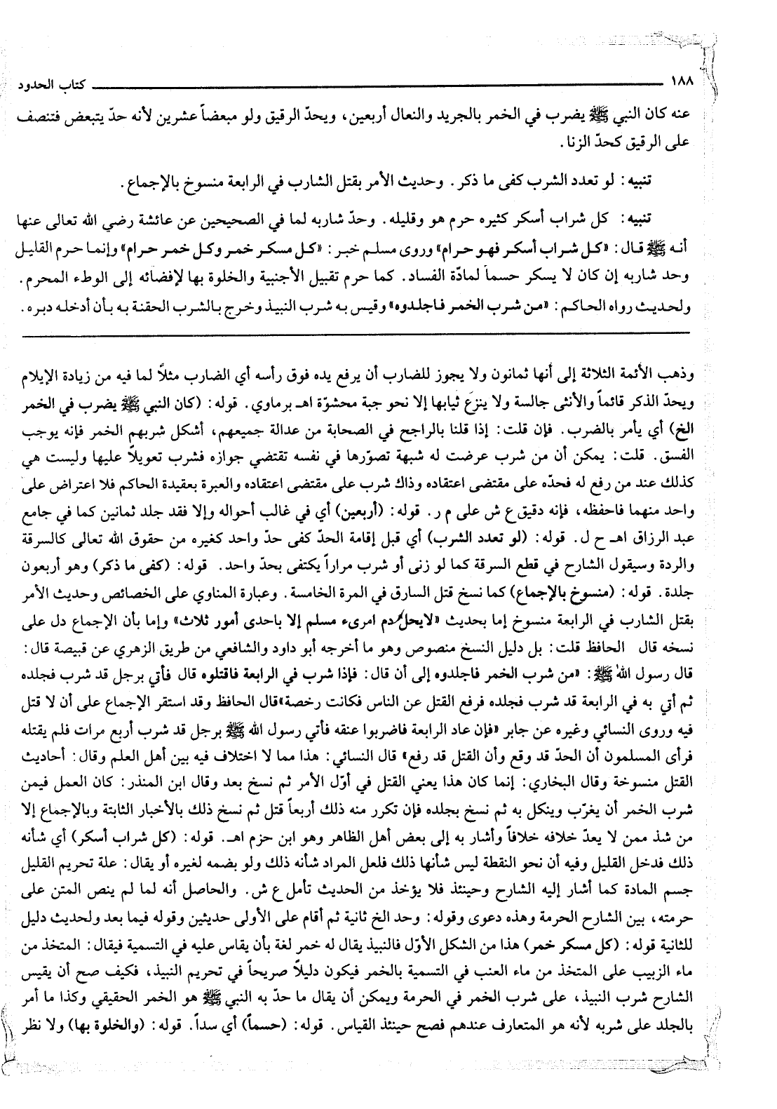 قَوْلُهُ: «كَانَ النَّبِيُّ - صَلَّى اللَّهُ عَلَيْهِ وَسَلَّمَ - يَضْرِبُ فِي الْخَمْرِ» إلَخْ أَيْ يَأْمُرُ بِالضَّرْبِ. فَإِنْ قُلْت: إذَا قُلْنَا بِالرَّاجِحِ فِي الصَّحَابَةِ مِنْ عَدَالَةِ جَمِيعِهِمْ، أَشْكَلَ شُرْبُهُمْ الْخَمْرَ فَإِنَّهُ يُوجِبُ الْفِسْقَ. قُلْت: يُمْكِنُ أَنَّ مَنْ شَرِبَ عَرَضَتْ لَهُ شُبْهَةٌ تَصَوَّرَهَا فِي نَفْسِهِ تَقْتَضِي جَوَازَهُ فَشَرِبَ تَعْوِيلًا عَلَيْهَا وَلَيْسَتْ هِيَ كَذَلِكَ عِنْدَ مَنْ رُفِعَ لَهُ، فَحَدُّهُ عَلَى مُقْتَضَى اعْتِقَادِهِ، وَذَاكَ شَرِبَ عَلَى مُقْتَضَى اعْتِقَادِهِ وَالْعِبْرَةُ بِعَقِيدَةِ الْحَاكِمِ فَلَا اعْتِرَاضَ عَلَى وَاحِدٍ مِنْهُمَا فَاحْفَظْهُ، فَإِنَّهُ دَقِيقٌ ع ش عَلَى م ر.