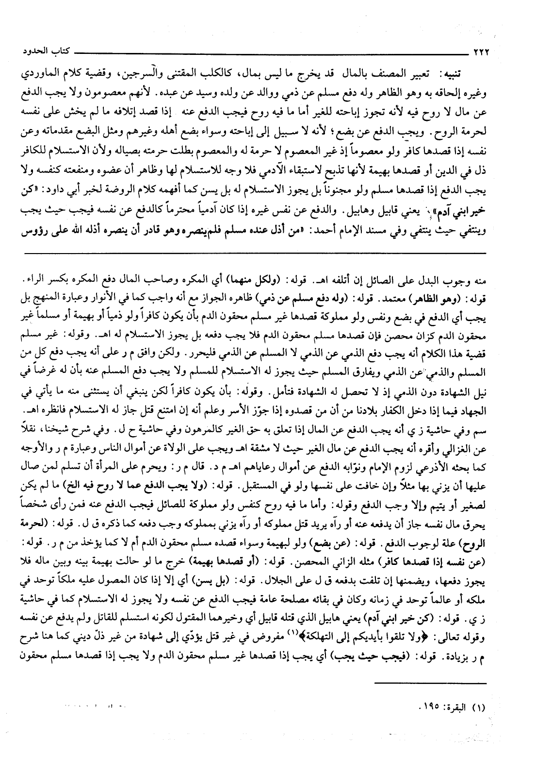 قَوْلُهُ: (كُنْ خَيْرَ ابْنَيْ آدَمَ) يَعْنِي هَابِيلَ الَّذِي قَتَلَهُ قَابِيلُ أَيْ وَخَيْرُهُمَا الْمَقْتُولُ لِكَوْنِهِ اسْتَسْلَمَ لِلْقَاتِلِ وَلَمْ يَدْفَعْ عَنْ نَفْسِهِ وقَوْله تَعَالَى: {وَلا تُلْقُوا بِأَيْدِيكُمْ إِلَى التَّهْلُكَةِ} [البقرة: 195] مَفْرُوضٌ فِي غَيْرِ قَتْلٍ يُؤَدِّي إلَى شَهَادَةٍ مِنْ غَيْرِ ذُلٍّ دِينِيٍّ كَمَا هُنَا شَرْحُ م ر بِزِيَادَةٍ. قَوْلُهُ: (فَيَجِبُ حَيْثُ يَجِبُ) أَيْ يَجِبُ إذَا قَصَدَهَا غَيْرُ مُسْلِمٍ مَحْقُونُ الدَّمِ وَلَا يَجِبُ إذَا قَصَدَهَا مُسْلِمٌ مَحْقُونُ