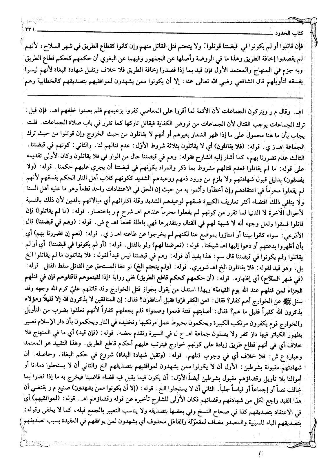 قَوْلُهُ: (فَإِنْ قُيِّدَ) أَيْ مَا فِي الْمِنْهَاجِ فَلَا خِلَافَ أَيْ فِي أَنَّهُمْ قُطَّاعُ طَرِيقٍ زِيَادَةً عَلَى كَوْنِهِمْ خَوَارِجَ فَيَتَرَتَّبُ عَلَيْهِمْ أَحْكَامُ قَاطِعِ الطَّرِيقِ. وَهَذَا التَّقْيِيدُ هُوَ الْمُعْتَمَدُ وَعِبَارَةُ ع ش: فَلَا خِلَافَ أَيْ فِي وُجُوبِ قَتْلِهِمْ.
