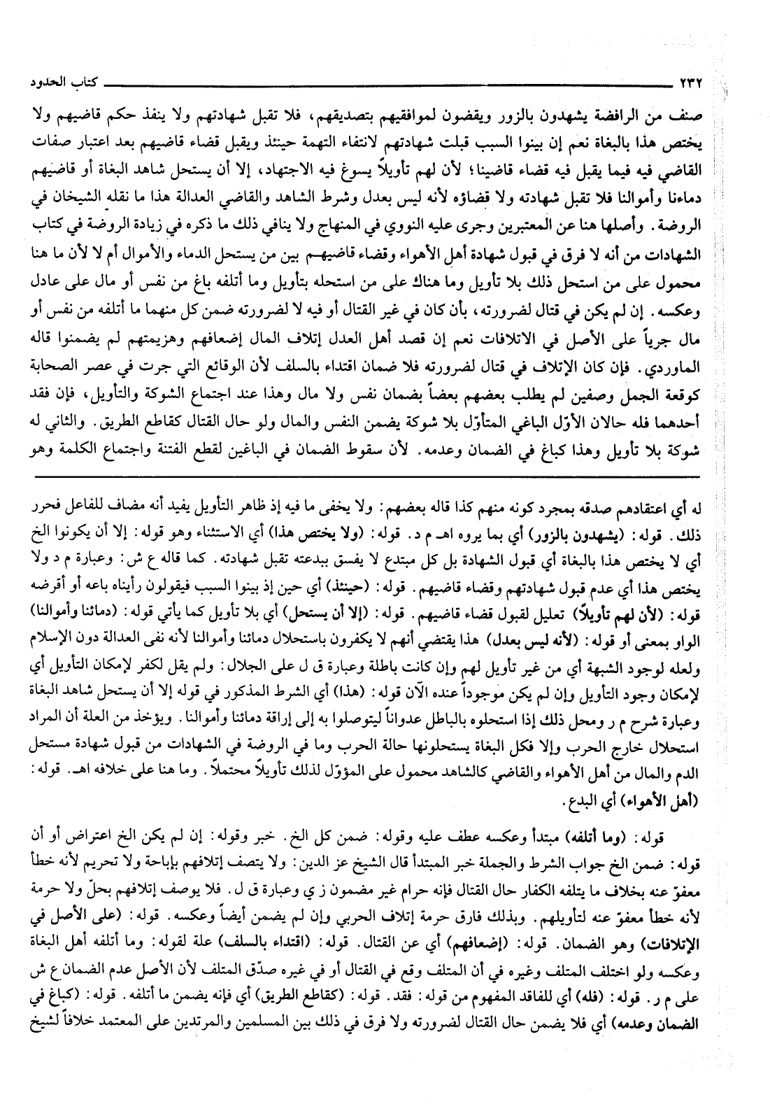صِنْفٌ مِنْ الرَّافِضَةِ يَشْهَدُونَ بِالزُّورِ وَيَقْضُونَ لِمُوَافِقِيهِمْ بِتَصْدِيقِهِمْ، فَلَا تُقْبَلُ شَهَادَتُهُمْ وَلَا يَنْفُذُ حُكْمُ قَاضِيهِمْ وَلَا يَخْتَصُّ هَذَا بِالْبُغَاةِ نَعَمْ إنْ بَيَّنُوا السَّبَبَ قُبِلَتْ شَهَادَتُهُمْ لِانْتِفَاءِ التُّهْمَةِ حِينَئِذٍ وَيُقْبَلُ قَضَاءُ قَاضِيهِمْ بَعْدَ اعْتِبَارِ صِفَاتِ الْقَاضِي فِيهِ فِيمَا يُقْبَلُ فِيهِ قَضَاءُ قَاضِينَا؛ لِأَنَّ لَهُمْ تَأْوِيلًا يَسُوغُ فِيهِ الِاجْتِهَادُ، إلَّا أَنْ يَسْتَحِلَّ شَاهِدُ الْبُغَاةِ أَوْ قَاضِيهمْ دِمَاءَنَا وَأَمْوَالَنَا فَلَا تُقْبَلُ شَهَادَتُهُ وَلَا قَضَاؤُهُ لِأَنَّهُ لَيْسَ بِعَدْلٍ وَشَرْطُ الشَّاهِدِ وَالْقَاضِي الْعَدَالَةُ هَذَا مَا نَقَلَهُ الشَّيْخَانِ فِي الرَّوْضَةِ.