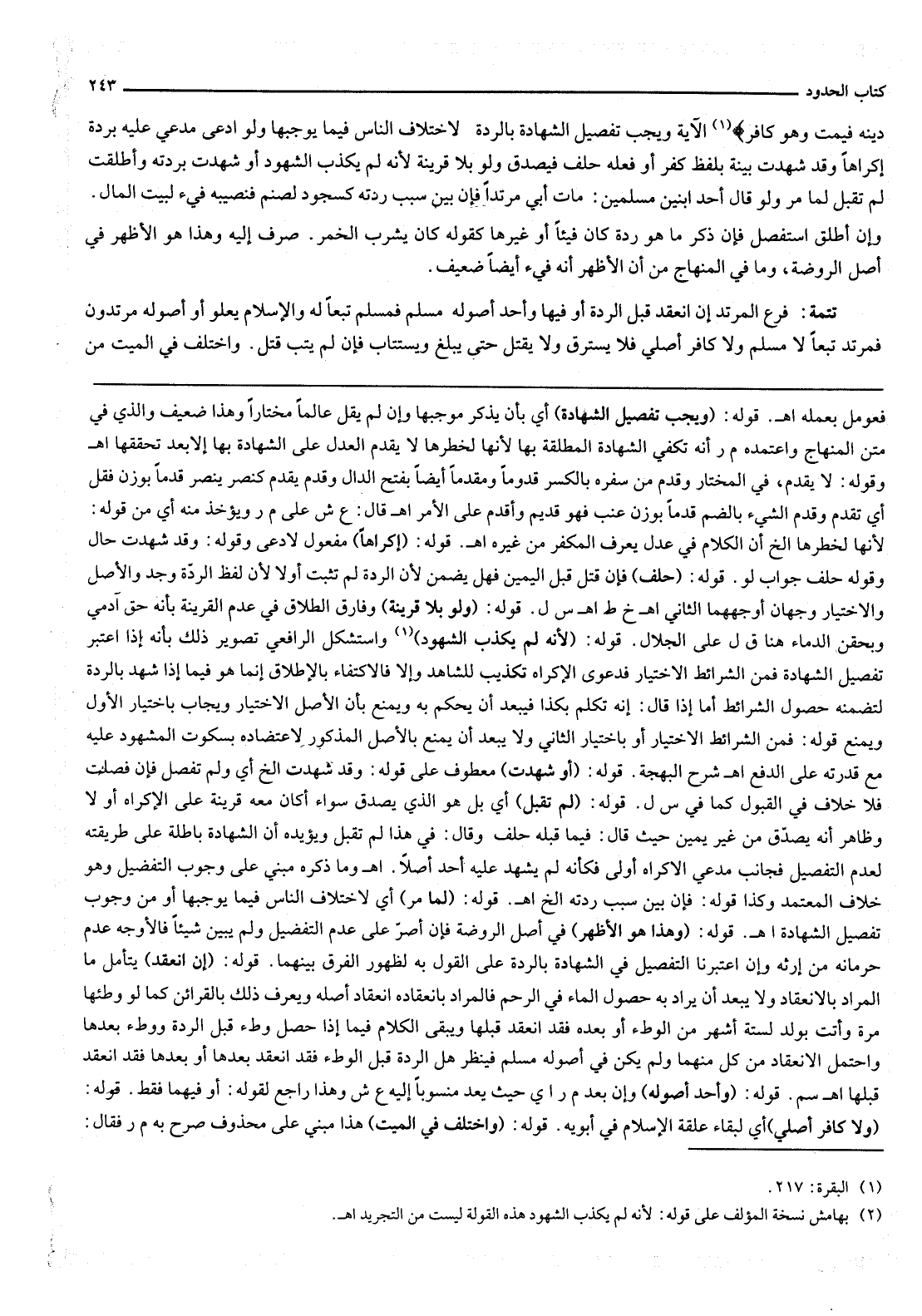 قَوْلُهُ: (لِمَا مَرَّ) أَيْ لِاخْتِلَافِ النَّاسِ فِيمَا يُوجِبُهَا أَوْ مِنْ وُجُوبِ تَفْصِيلِ الشَّهَادَةِ اهـ.