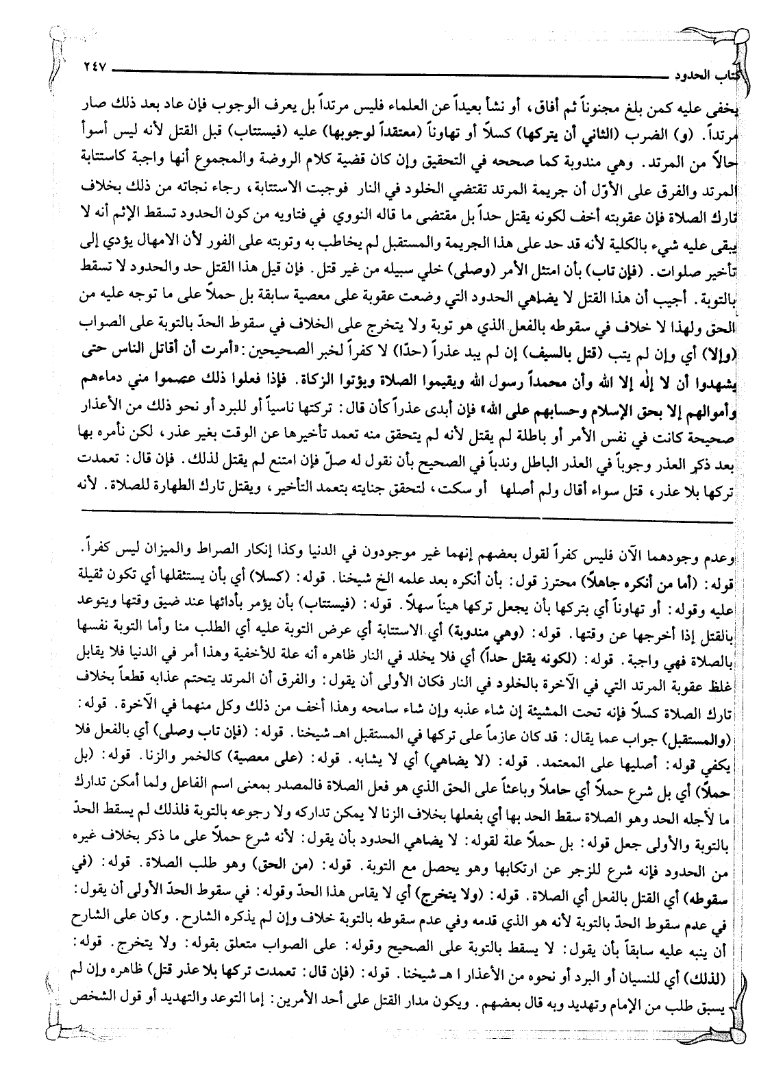 قَوْلُهُ: (فِي سُقُوطِهِ) أَيْ الْقَتْلِ بِالْفِعْلِ أَيْ الصَّلَاةِ.