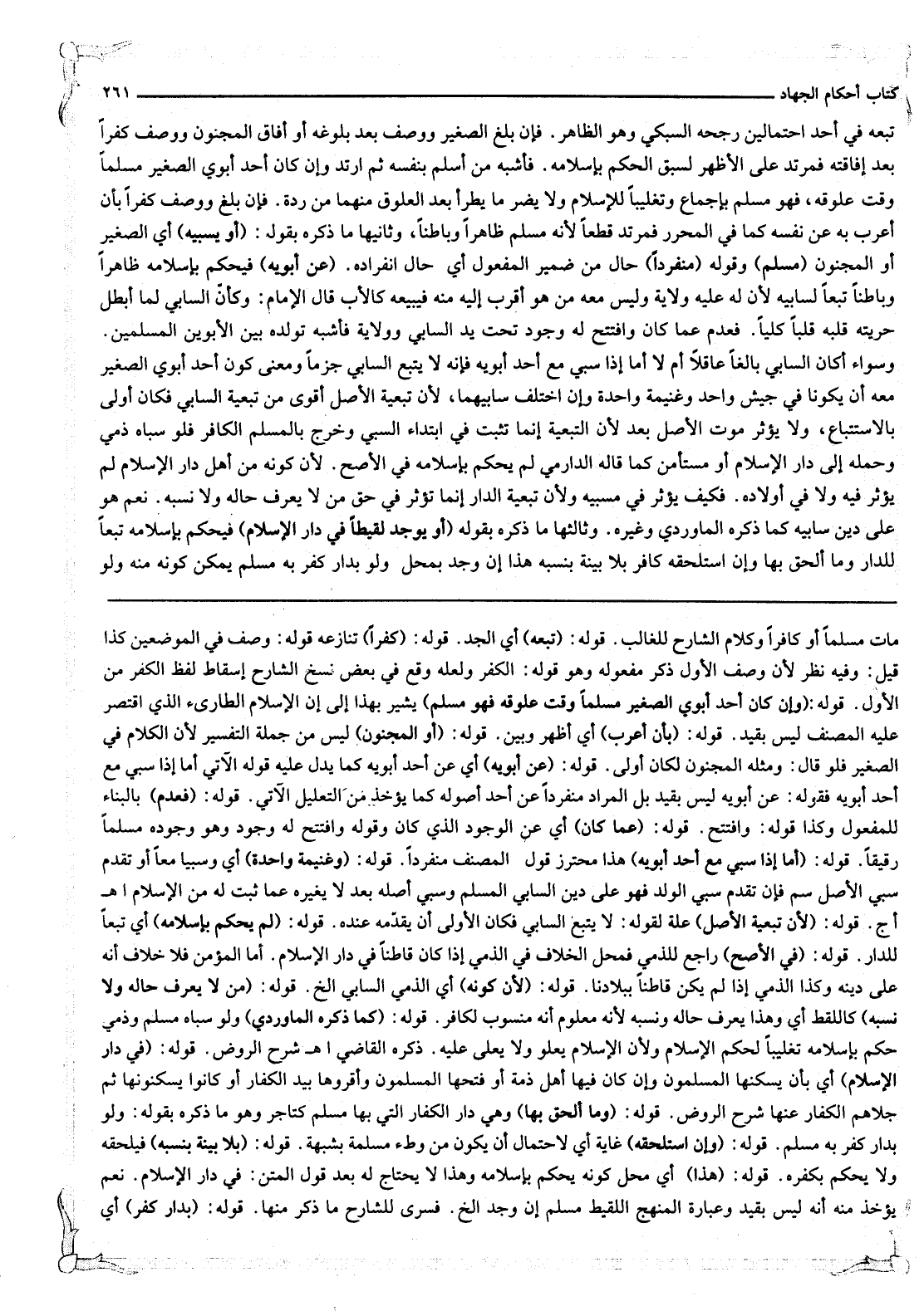 قَوْلُهُ: (مَنْ لَا يُعْرَفُ حَالُهُ وَلَا نَسَبُهُ) كَاللَّقْطِ أَيْ وَهَذَا يُعْرَفُ حَالُهُ وَنَسَبُهُ لِأَنَّهُ مَعْلُومٌ أَنَّهُ مَنْسُوبٌ لِكَافِرٍ. قَوْلُهُ: (كَمَا ذَكَرَهُ الْمَاوَرْدِيُّ) وَلَوْ سَبَاهُ مُسْلِمٌ وَذِمِّيٌّ حُكِمَ بِإِسْلَامِهِ تَغْلِيبًا لِحُكْمِ الْإِسْلَامِ وَلِأَنَّ الْإِسْلَامَ يَعْلُو وَلَا يُعْلَى عَلَيْهِ. ذَكَرَهُ الْقَاضِي. اهـ. شَرْحُ الرَّوْضِ.