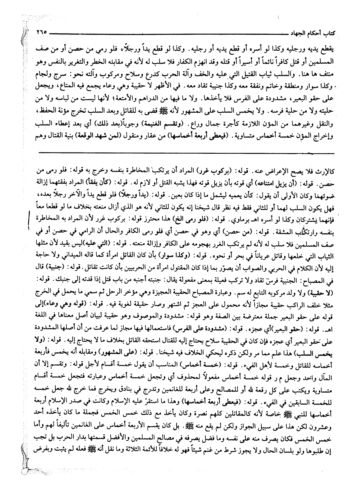 قَوْلُهُ: (وَلَا يُخَمَّسُ السَّلَبُ) هَذَا عُلِمَ مِمَّا مَرَّ وَلَكِنْ ذَكَرَهُ لِيَحْكِيَ الْخِلَافَ فِيهِ شَيْخُنَا.