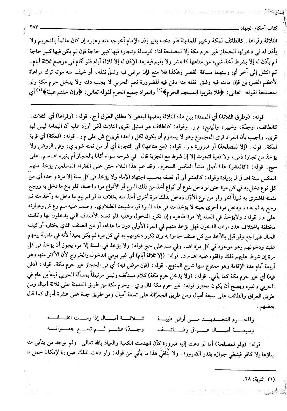 وَسَبْعَةُ أَمْيَالٍ عِرَاقٌ وَطَائِفٌ ... وَجَدَّةُ عَشَرٌ ثُمَّ تِسْعٌ جِعْرَانَهْ