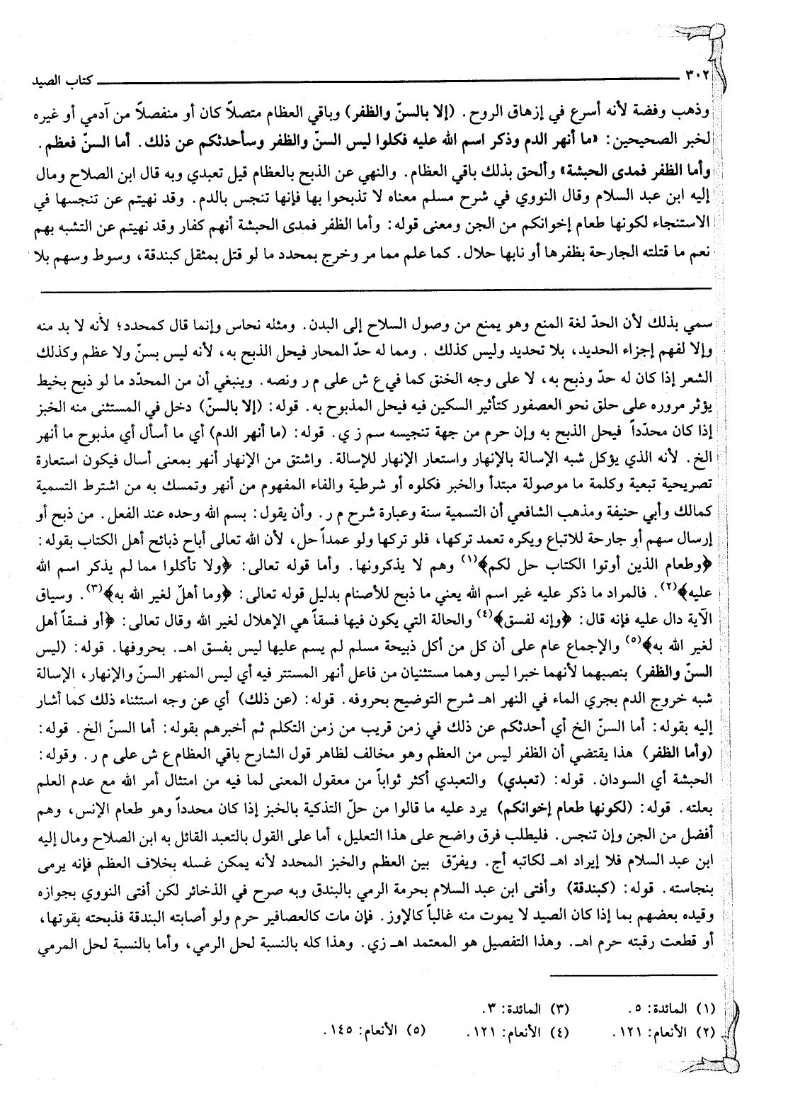 وَذَهَبٍ وَفِضَّةٍ لِأَنَّهُ أَسْرَعُ فِي إزْهَاقِ الرُّوحِ. (إلَّا بِالسِّنِّ وَالظُّفْرِ) وَبَاقِي الْعِظَامِ مُتَّصِلًا كَانَ أَوْ مُنْفَصِلًا مِنْ آدَمِيٍّ أَوْ غَيْرِهِ لِخَبَرِ الصَّحِيحَيْنِ: «مَا أَنْهَرَ الدَّمَ وَذُكِرَ اسْمُ اللَّهِ عَلَيْهِ فَكُلُوا لَيْسَ السِّنَّ وَالظُّفْرَ وَسَأُحَدِّثُكُمْ عَنْ ذَلِكَ. أَمَّا السِّنُّ فَعَظْمٌ. وَأَمَّا الظُّفْرُ فَمُدَى الْحَبَشَةِ» وَأُلْحِقَ بِذَلِكَ بَاقِي الْعِظَامِ. وَالنَّهْيُ عَنْ الذَّبْحِ بِالْعِظَامِ قِيلَ تَعَبُّدِيٌّ وَبِهِ قَالَ ابْنُ الصَّلَاحِ وَمَالَ إلَيْهِ ابْنُ عَبْدِ السَّلَامِ وَقَالَ النَّوَوِيُّ فِي شَرْحِ مُسْلِمٍ مَعْنَاهُ لَا تَذْبَحُوا بِهَا فَإِنَّهَا تُنَجَّسُ بِالدَّمِ. وَقَدْ نُهِيتُمْ عَنْ تَنَجُّسِهَا فِي الِاسْتِنْجَاءِ لِكَوْنِهَا طَعَامَ إخْوَانِكُمْ مِنْ الْجِنِّ وَمَعْنَى قَوْلِهِ: (وَأَمَّا الظُّفْرُ فَمُدَى الْحَبَشَةِ) أَنَّهُمْ كُفَّارٌ وَقَدْ نُهِيتُمْ عَنْ التَّشَبُّهِ بِهِمْ نَعَمْ مَا قَتَلَتْهُ الْجَارِحَةُ بِظُفْرِهَا أَوْ نَابِهَا حَلَالٌ. كَمَا عُلِمَ مِمَّا مَرَّ وَخَرَجَ بِمُحَدِّدٍ مَا لَوْ قُتِلَ بِمُثْقَلٍ كَبُنْدُقَةٍ، وَسَوْطٍ وَسَهْمٍ بِلَا