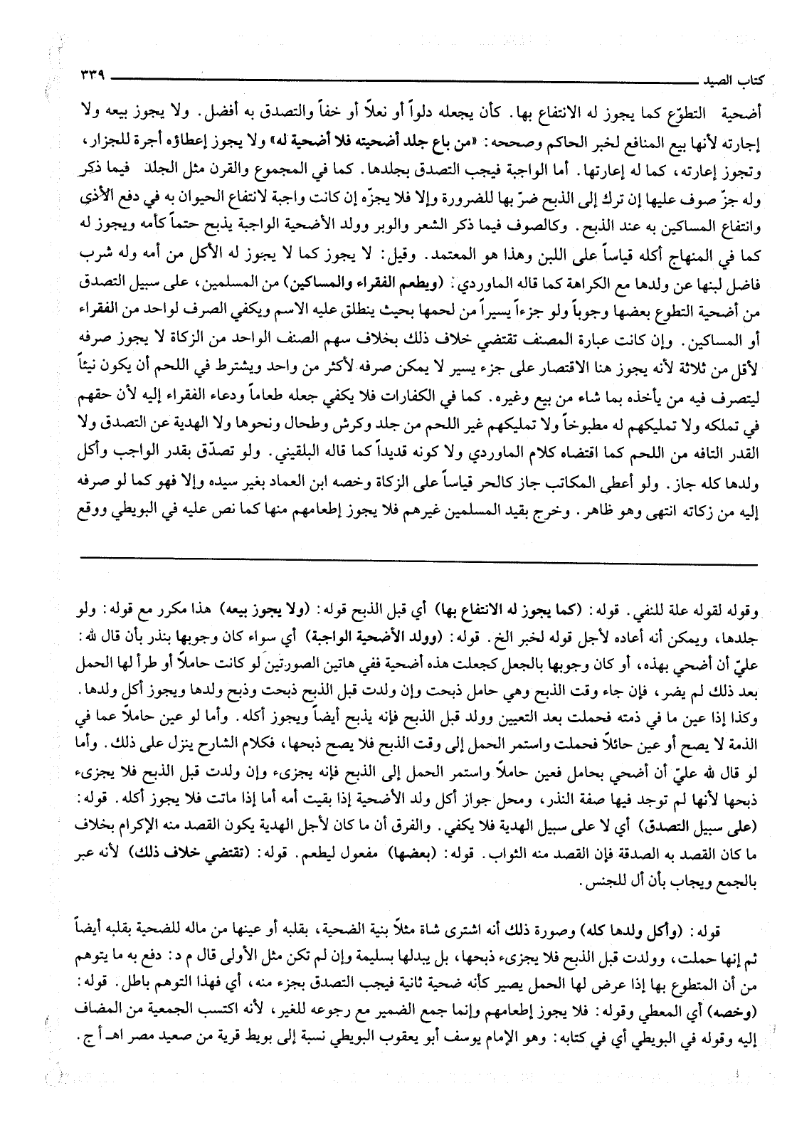 قَوْلُهُ: (كَمَا يَجُوزُ لَهُ الِانْتِفَاعُ بِهَا) أَيْ قَبْلَ الذَّبْحِ قَوْلُهُ: (وَلَا يَجُوزُ بَيْعُهُ) هَذَا مُكَرَّرٌ مَعَ قَوْلِهِ: وَلَوْ جِلْدَهَا، وَيُمْكِنُ أَنَّهُ أَعَادَهُ لِأَجْلِ قَوْلِهِ لِخَبَرِ إلَخْ.