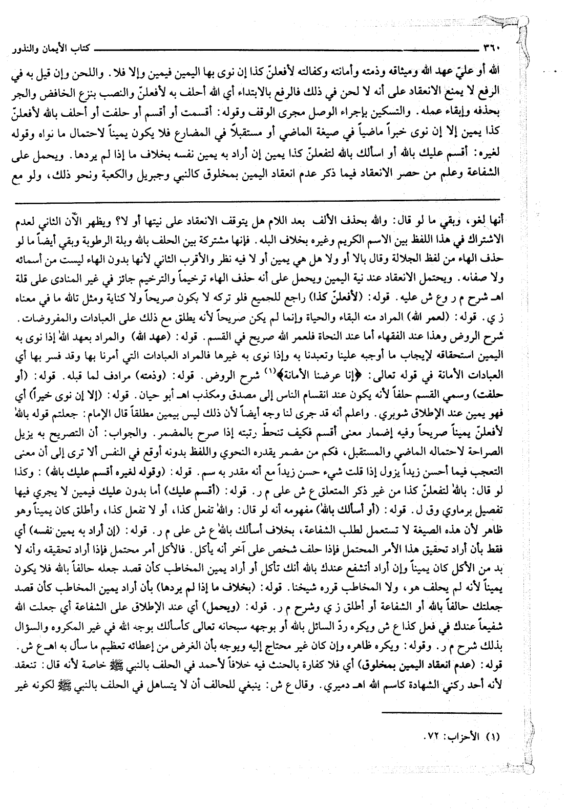 شَرْحُ الرَّوْضِ وَهَذَا عِنْدَ الْفُقَهَاءِ أَمَّا عِنْدَ النُّحَاةِ فَلَعَمْرُ اللَّهِ صَرِيحٌ فِي الْقَسَمِ. قَوْلُهُ: (عَهْدُ اللَّهِ) وَالْمُرَادُ بِعَهْدِ اللَّهِ إذَا نَوَى بِهِ الْيَمِينَ اسْتِحْقَاقُهُ لِإِيجَابِ مَا أَوْجَبَهُ عَلَيْنَا وَتَعَبَّدَنَا بِهِ وَإِذَا نَوَى بِهِ غَيْرَهَا فَالْمُرَادُ الْعِبَادَاتُ الَّتِي أُمِرْنَا بِهَا وَقَدْ فَسَّرَ بِهَا أَيْ الْعِبَادَاتِ الْأَمَانَةَ فِي قَوْله تَعَالَى: {إِنَّا عَرَضْنَا الأَمَانَةَ} [الأحزاب: 72] شَرْحُ الرَّوْضِ.