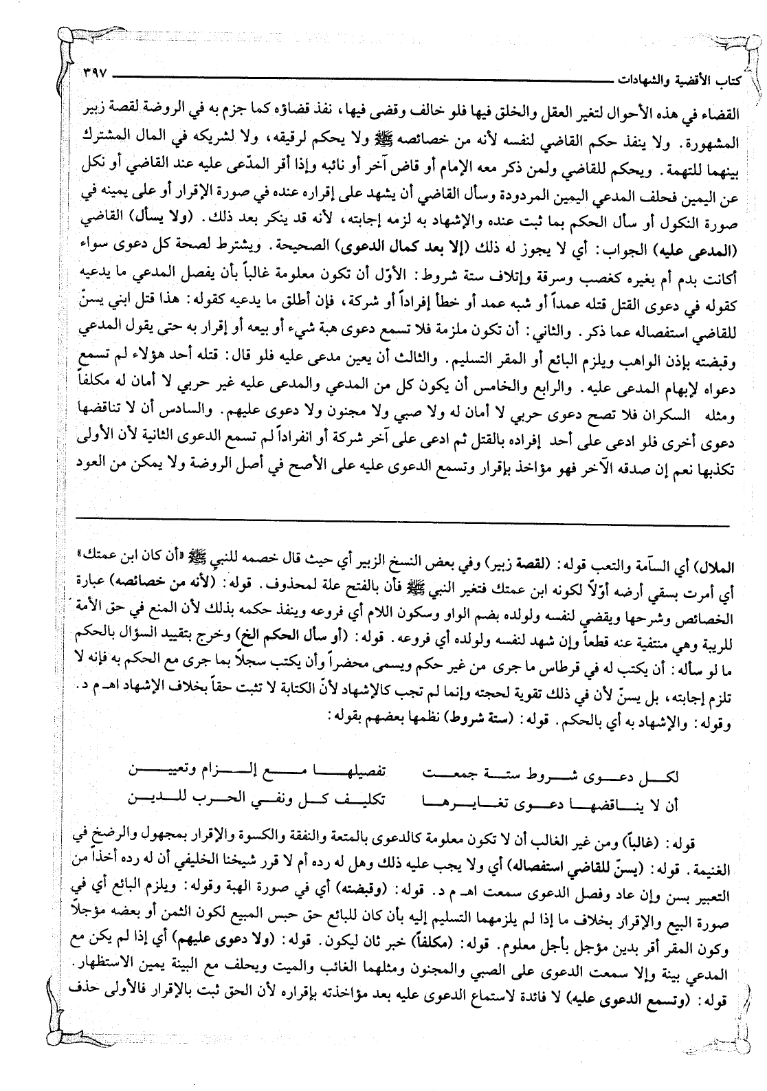 لِكُلِّ دَعْوَى شُرُوطٌ سِتَّةٌ جُمِعَتْ ... تَفْصِيلُهَا مَعَ إلْزَامٍ وَتَعْيِينِ