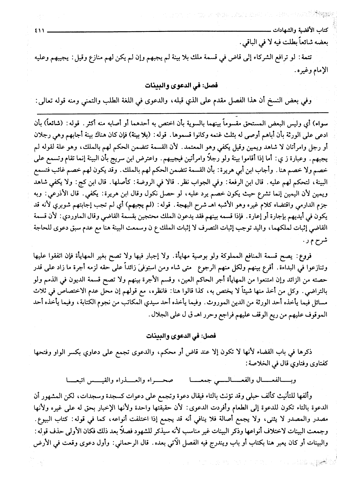 فَصْلٌ فِي الدَّعْوَى وَالْبَيِّنَاتِ وَفِي بَعْضِ النُّسَخِ أَنَّ هَذَا الْفَصْلَ مُقَدَّمٌ عَلَى الَّذِي قَبْلَهُ، وَالدَّعْوَى فِي اللُّغَةِ الطَّلَبُ وَالتَّمَنِّي وَمِنْهُ قَوْله تَعَالَى {وَلَهُمْ مَا يَدَّعُونَ} [يس: 57]