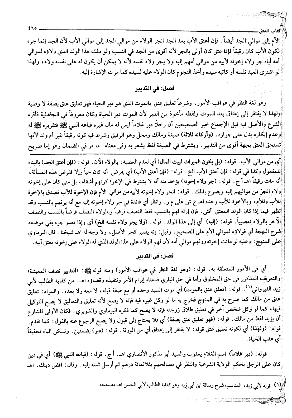 قَوْلُهُ: (دُبُرُ) بِضَمَّتَيْنِ. وَتُسَكَّنُ الْبَاءُ تَخْفِيفًا أَيْ عَقِبَ الْحَيَاةِ. قَوْلُهُ: (دَبَّرَ غُلَامًا) اسْمُ الْغُلَامِ يَعْقُوبُ وَالسَّيِّدِ أَبُو مَذْكُورٍ الْأَنْصَارِيُّ اهـ. أج. قَوْلُهُ: (فَبَاعَهُ النَّبِيُّ - صَلَّى اللَّهُ عَلَيْهِ وَسَلَّمَ -) أَيْ فِي دَيْنٍ كَانَ عَلَى الرَّجُلِ بِحُكْمِ الْوِلَايَةِ الشَّرْعِيَّةِ وَالنَّظَرِ فِي مَصَالِحِهِمْ بِثَلَاثِمِائَةِ دِرْهَمٍ ثُمَّ أَرْسَلَ ثَمَنَهُ إلَيْهِ. وَقَالَ: اقْضِ دَيْنَك، اهـ