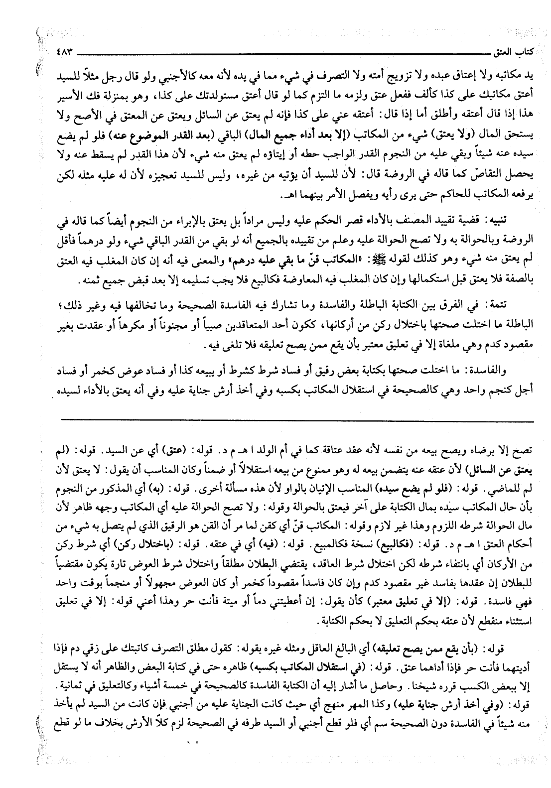 قَوْلُهُ: (فِي اسْتِقْلَالِ الْمُكَاتَبِ بِكَسْبِهِ) ظَاهِرُهُ حَتَّى فِي كِتَابَةِ الْبَعْضِ وَالظَّاهِرُ أَنَّهُ لَا يَسْتَقِلُّ إلَّا بِبَعْضِ الْكَسْبِ قَرَّرَهُ شَيْخُنَا. وَحَاصِلُ مَا أَشَارَ إلَيْهِ أَنَّ الْكِتَابَةَ الْفَاسِدَةَ كَالصَّحِيحَةِ فِي خَمْسَةِ أَشْيَاءَ وَكَالتَّعْلِيقِ فِي ثَمَانِيَةٍ.