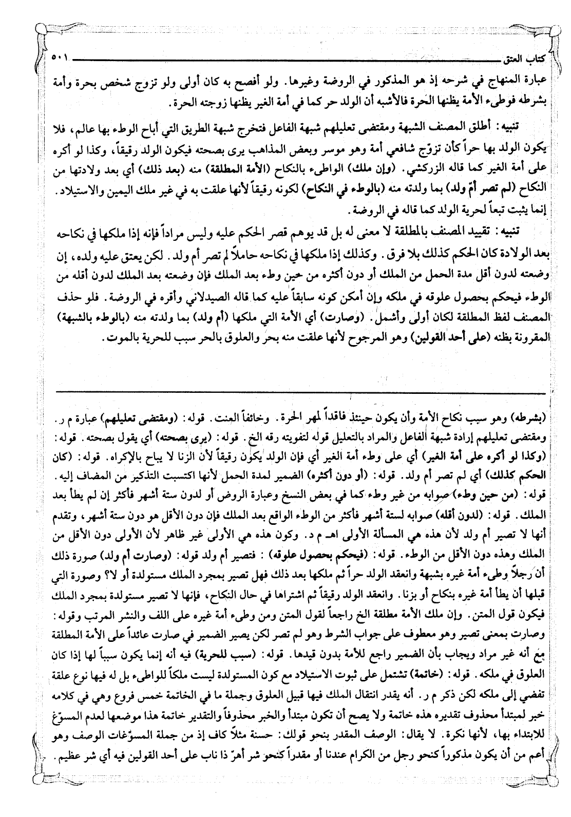 تَنْبِيهٌ تَقْيِيدُ الْمُصَنِّفِ بِالْمُطَلَّقَةِ لَا مَعْنَى لَهُ بَلْ قَدْ يُوهِمُ قَصْرَ الْحُكْمِ عَلَيْهِ وَلَيْسَ مُرَادًا فَإِنَّهُ إذَا مَلَكَهَا فِي نِكَاحِهِ بَعْدَ الْوِلَادَةِ كَانَ الْحُكْمُ كَذَلِكَ بِلَا فَرْقٍ. وَكَذَلِكَ إذَا مَلَكَهَا فِي نِكَاحِهِ حَامِلًا لَمْ تَصِرْ أَمَّ وَلَدٍ. لَكِنْ يَعْتِقُ عَلَيْهِ وَلَدُهُ، إنْ وَضَعَتْهُ لِدُونِ أَقَلِّ مُدَّةِ الْحَمْلِ مِنْ الْمِلْكِ أَوْ دُونَ أَكْثَرِهِ مِنْ حِينِ وَطِئَ بَعْدَ الْمِلْكِ فَإِنْ وَضَعَتْهُ بَعْدَ الْمِلْكِ لِدُونِ أَقَلِّهِ مِنْ الْوَطْءِ فَيُحْكَمُ بِحُصُولِ عُلُوقِهِ فِي مِلْكِهِ وَإِنْ أَمْكَنَ كَوْنُهُ سَابِقًا عَلَيْهِ كَمَا قَالَهُ الصَّيْدَلَانِيُّ وَأَقَرَّهُ فِي الرَّوْضَةِ. فَلَوْ حَذَفَ الْمُصَنِّفُ لَفْظَ الْمُطَلَّقَةِ لَكَانَ أَوْلَى وَأَشْمَلَ. (وَصَارَتْ) أَيْ الْأَمَةُ الَّتِي مَلَكَهَا (أُمَّ وَلَدٍ) بِمَا وَلَدَتْهُ مِنْهُ (بِالْوَطْءِ بِالشُّبْهَةِ) الْمَقْرُونَةِ بِظَنِّهِ (عَلَى أَحَدِ الْقَوْلَيْنِ) وَهُوَ الْمَرْجُوحُ لِأَنَّهَا عَلِقَتْ مِنْهُ بِحُرٍّ وَالْعُلُوقُ بِالْحُرِّ سَبَبٌ لِلْحُرِّيَّةِ بِالْمَوْتِ.