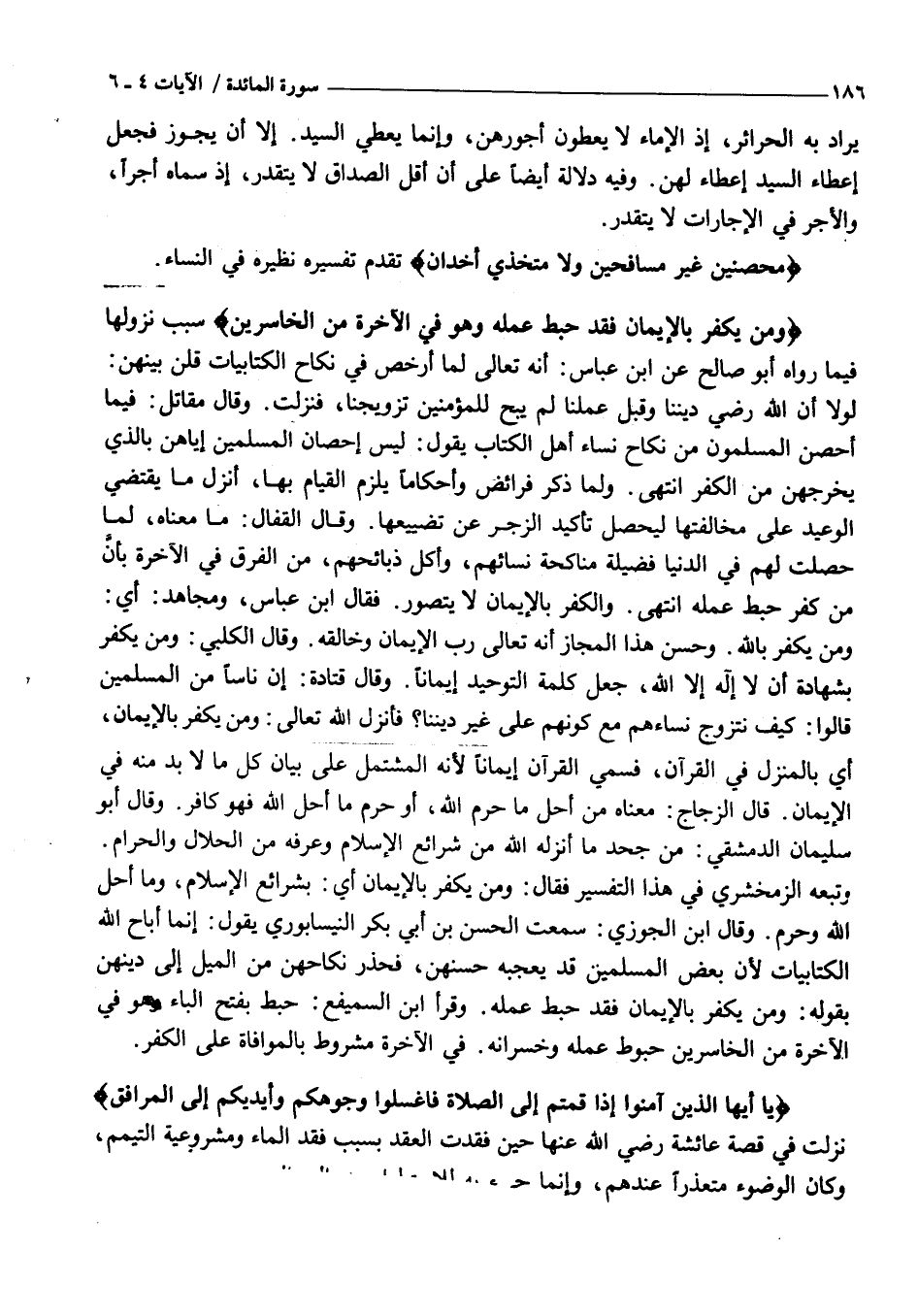وَمَنْ يَكْفُرْ بِالْإِيمانِ فَقَدْ حَبِطَ عَمَلُهُ وَهُوَ فِي الْآخِرَةِ مِنَ الْخاسِرِينَ سَبَبُ نُزُولِهَا فِيمَا رَوَاهُ أَبُو صَالِحٍ عَنِ ابْنِ عَبَّاسٍ: أَنَّهُ تَعَالَى لَمَّا أَرْخَصَ فِي نِكَاحِ الْكِتَابِيَّاتِ قُلْنَ بَيْنَهُنَّ: