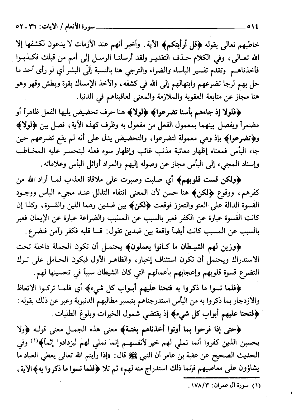 حَتَّى إِذا فَرِحُوا بِما أُوتُوا أَخَذْناهُمْ بَغْتَةً مَعْنَى هَذِهِ الْجُمَلِ مَعْنَى قَوْلِهِ وَلا يَحْسَبَنَّ الَّذِينَ كَفَرُوا أَنَّما نُمْلِي لَهُمْ خَيْرٌ لِأَنْفُسِهِمْ إِنَّما نُمْلِي لَهُمْ لِيَزْدادُوا إِثْماً «1»