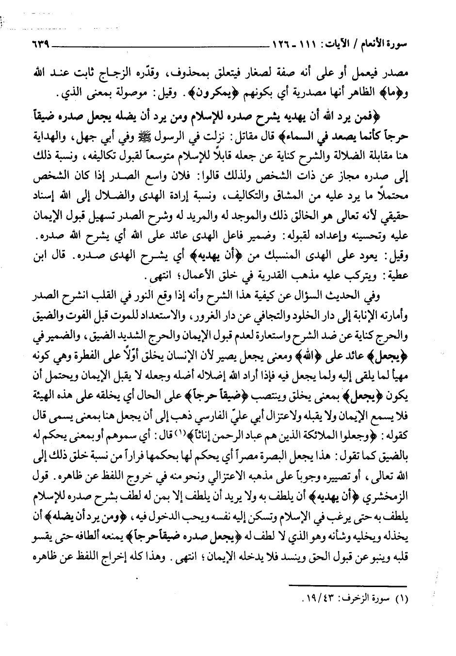 فَمَنْ يُرِدِ اللَّهُ أَنْ يَهْدِيَهُ يَشْرَحْ صَدْرَهُ لِلْإِسْلامِ وَمَنْ يُرِدْ أَنْ يُضِلَّهُ يَجْعَلْ صَدْرَهُ ضَيِّقاً حَرَجاً كَأَنَّما يَصَّعَّدُ فِي السَّماءِ