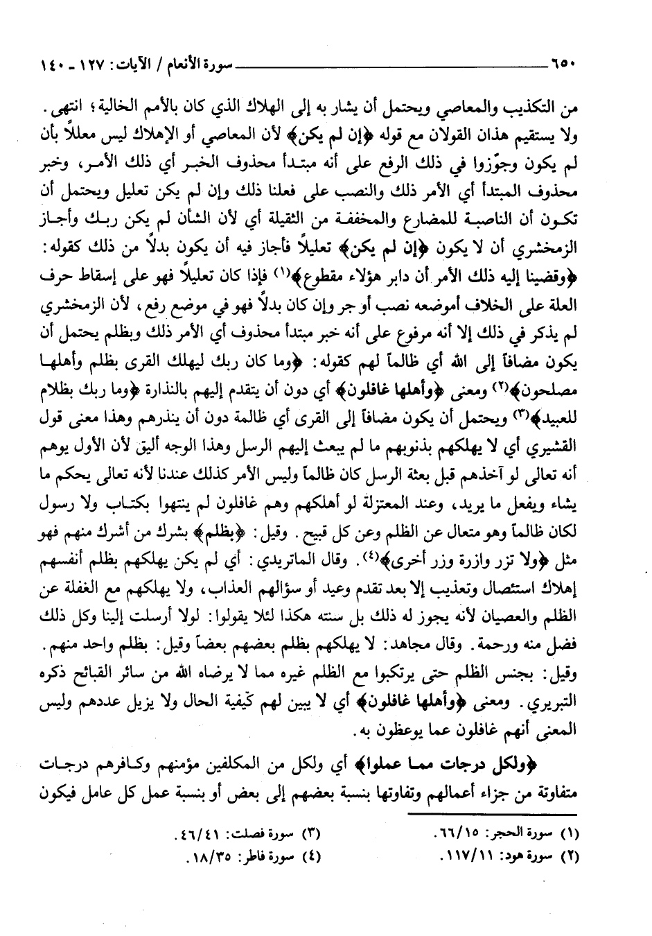 وَلِكُلٍّ دَرَجاتٌ مِمَّا عَمِلُوا أَيْ وَلِكُلٍّ مِنَ الْمُكَلَّفِينَ مُؤْمِنِهِمْ وَكَافِرِهِمْ دَرَجَاتٌ مُتَفَاوِتَةٌ مِنْ جَزَاءِ أَعْمَالِهِمْ وَتَفَاوُتِهَا بِنِسْبَةِ بعضهم إلى بعض أو بِنِسْبَةِ عَمَلِ كُلِّ عَامِلٍ فيكون
