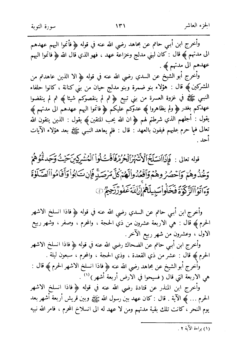 وَأخرج ابْن أبي حَاتِم عَن الضَّحَّاك رَضِي الله عَنهُ فِي قَوْله {فَإِذا انْسَلَخَ الْأَشْهر الْحرم} قَالَ: عشر من ذِي الْقعدَة وَذي الْحجَّة وَالْمحرم سَبْعُونَ لَيْلَة