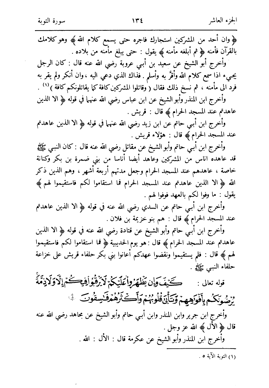 وَأخرج ابْن الْمُنْذر وَأَبُو الشَّيْخ عَن ابْن عَبَّاس رَضِي الله عَنْهُمَا فِي قَوْله {إِلَّا الَّذين عاهدتم عِنْد الْمَسْجِد الْحَرَام} قَالَ: قُرَيْش