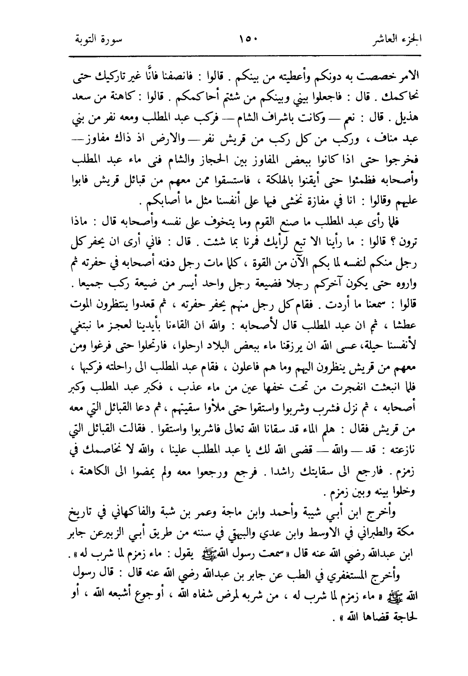 فَقَالَت الْقَبَائِل الَّتِي نازعته: قد - وَالله - قضى الله لَك يَا عبد الْمطلب علينا وَالله لَا نخاصمك فِي زَمْزَم