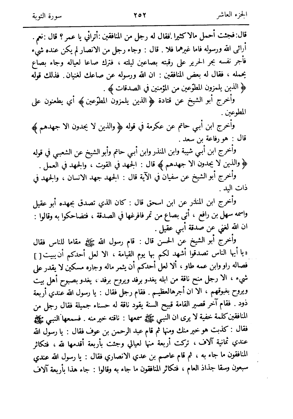 وَأخرج أَبُو الشَّيْخ عَن قَتَادَة {الَّذين يَلْمِزُونَ المطوّعين} أَي يطعنون على الْمُطوِّعين