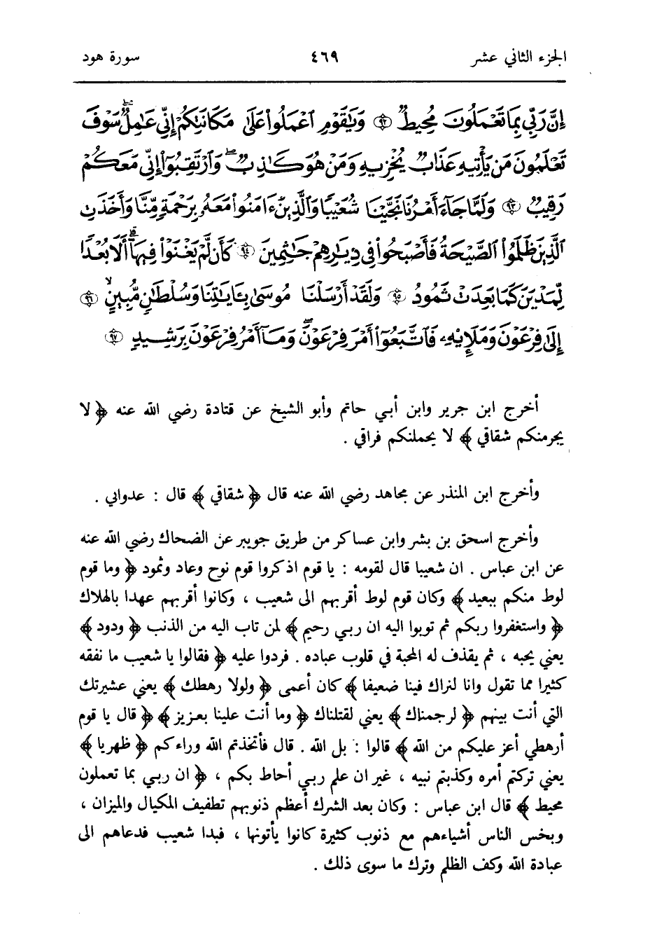 أخرج ابْن جرير وَابْن أبي حَاتِم وَأَبُو الشَّيْخ عَن قَتَادَة رَضِي الله عَنهُ {لَا يجرمنكم شقاقي} لايحملنكم فراقي