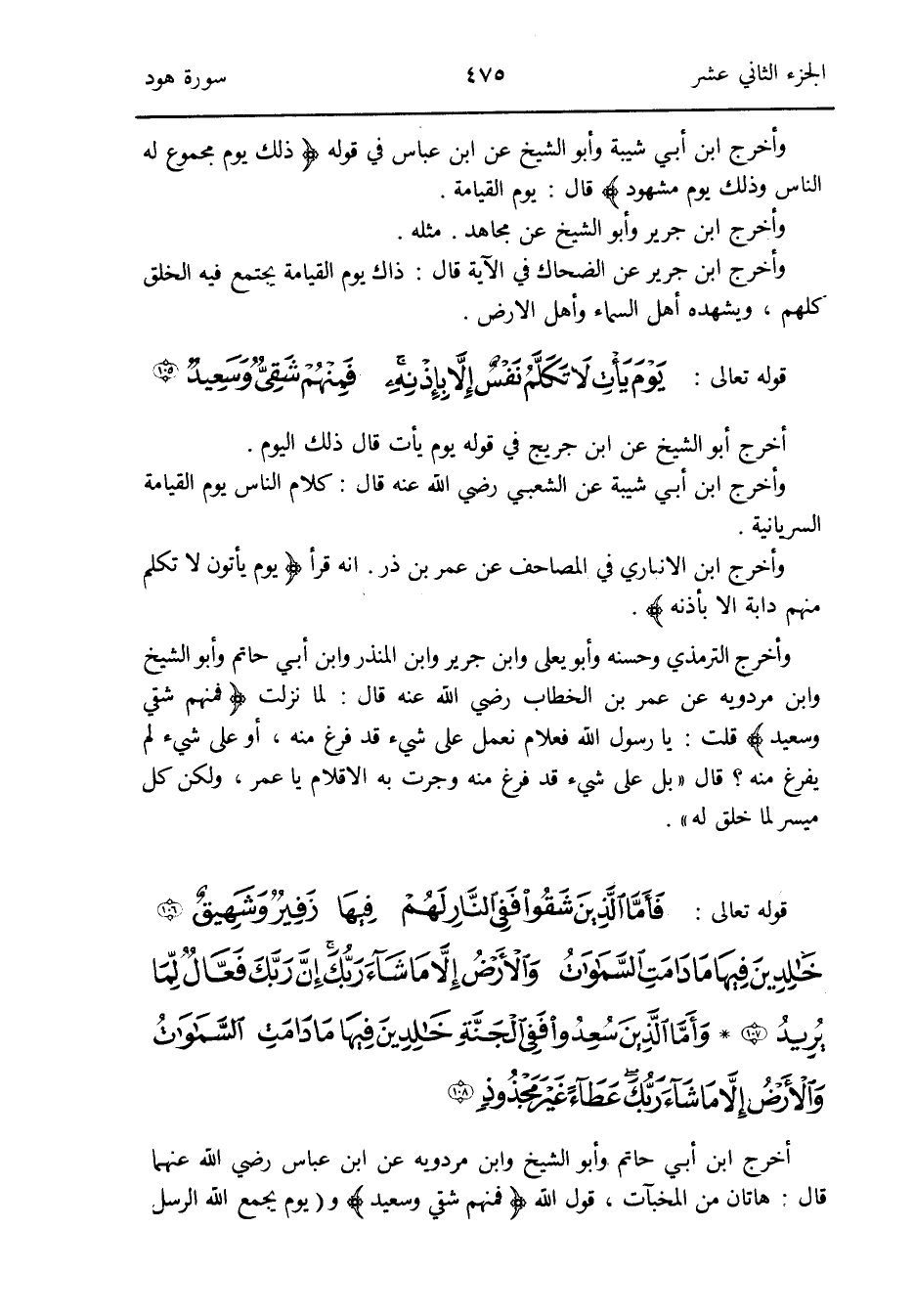 وَأخرج ابْن أبي شيبَة وَأَبُو الشَّيْخ عَن ابْن عَبَّاس فِي قَوْله {ذَلِك يَوْم مَجْمُوع لَهُ النَّاس وَذَلِكَ يَوْم مشهود} قَالَ: يَوْم الْقِيَامَة