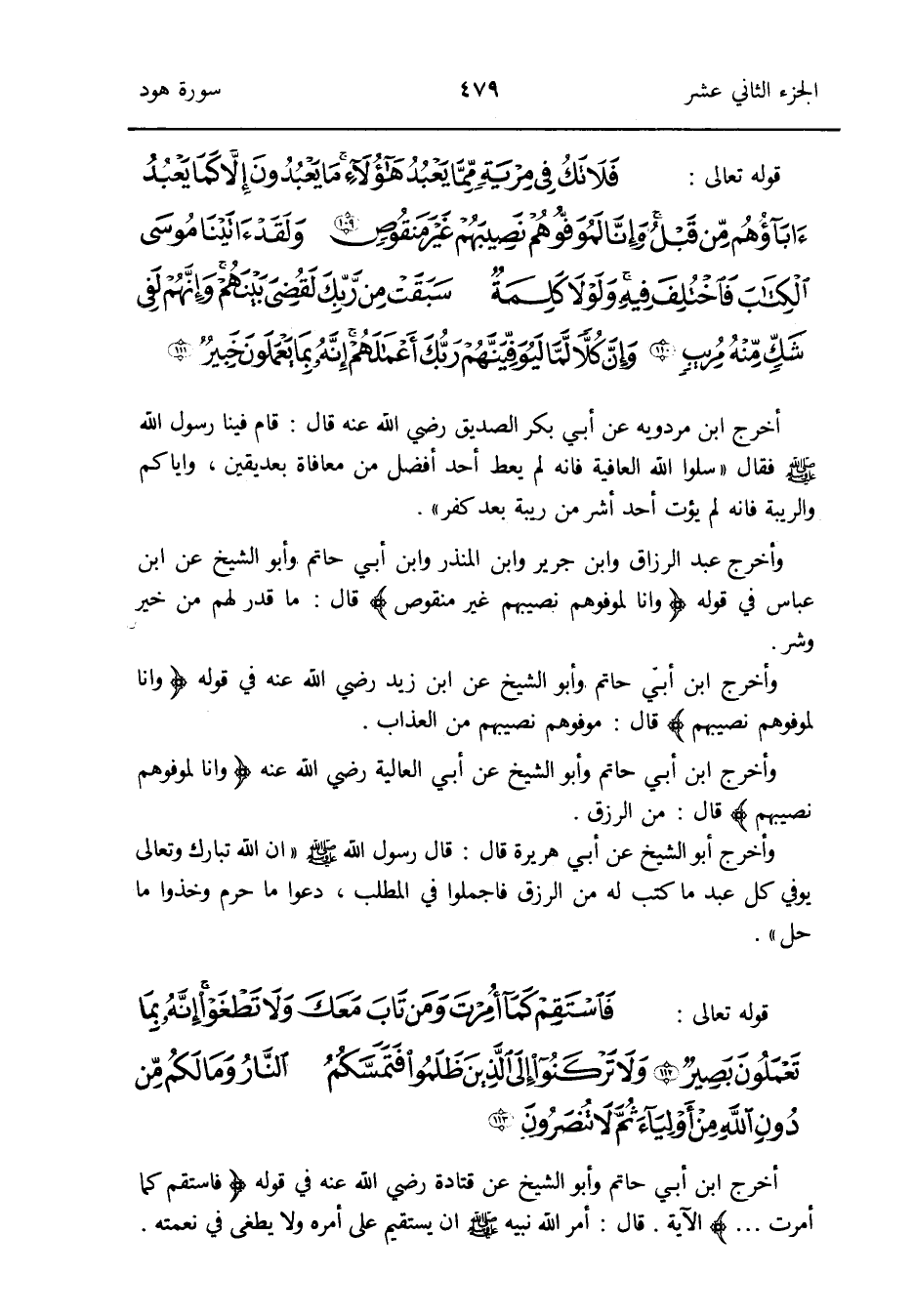أخرج ابْن أبي حَاتِم وَأَبُو الشَّيْخ عَن قَتَادَة رَضِي الله عَنهُ فِي قَوْله {فاستقم كَمَا أمرت} الْآيَة