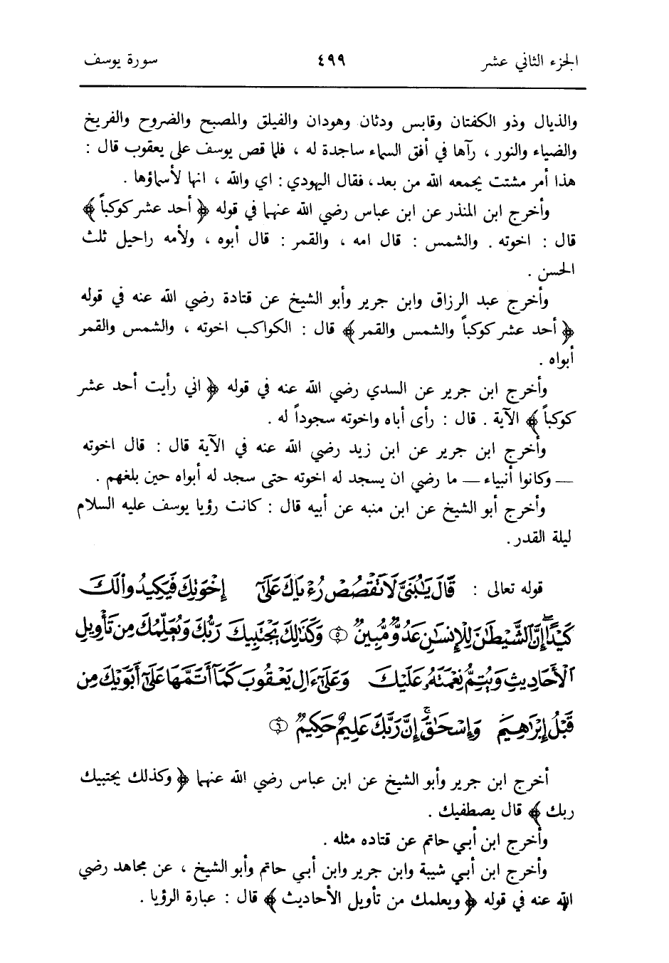 وَأخرج ابْن جرير عَن السّديّ رَضِي الله عنهفي قَوْله {إِنِّي رَأَيْت أحد عشر كوكباً} الْآيَة