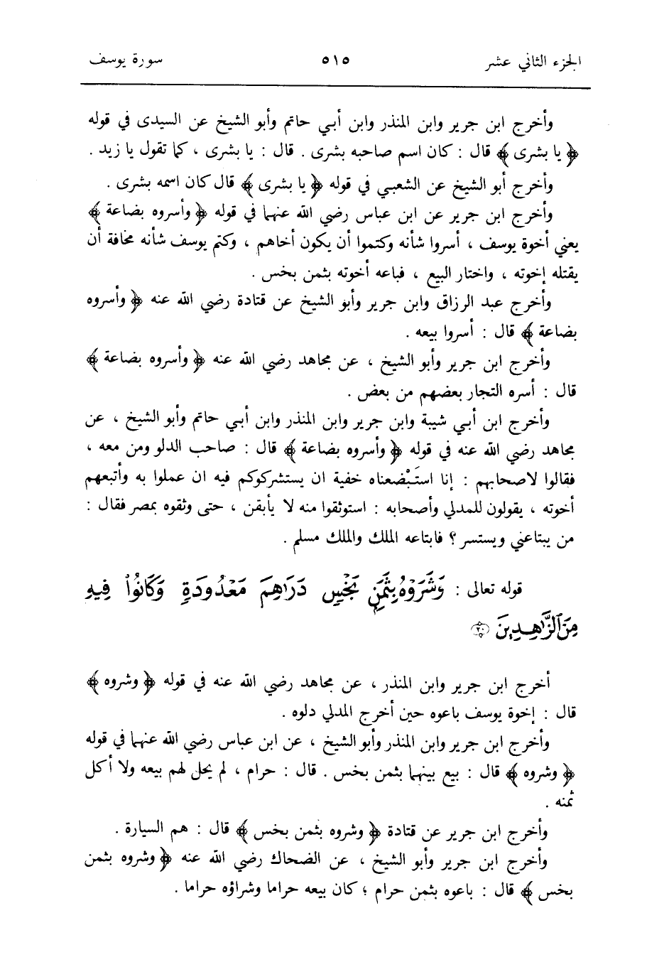 وَأخرج ابْن جرير عَن قَتَادَة {وشروه بِثمن بخس} قَالَ: هم السيارة