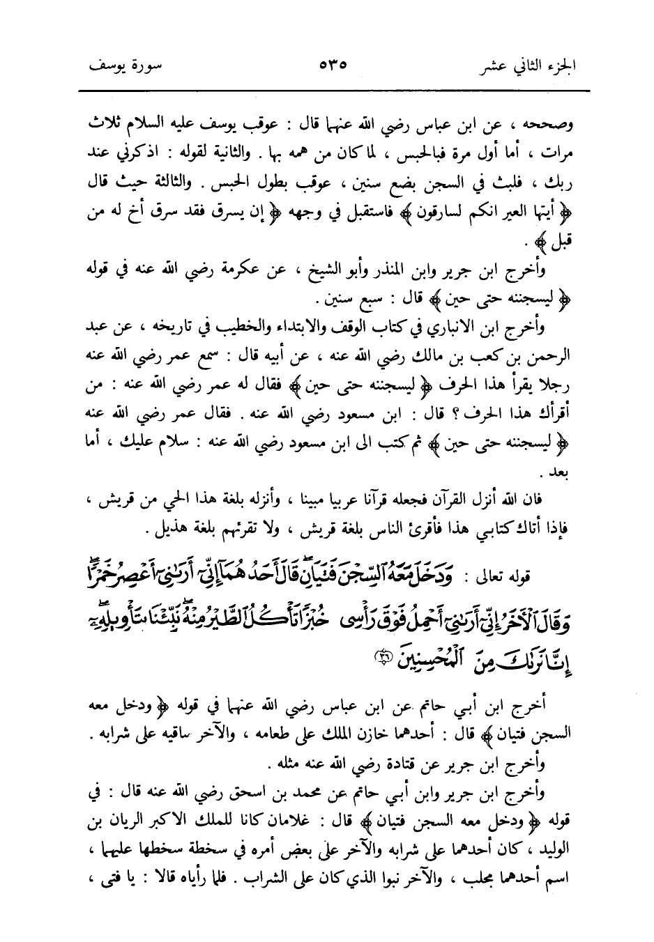 فَقَالَ عمر رَضِي الله عَنهُ {ليسجننه حَتَّى حِين} ثمَّ كتب إِلَى ابْن مَسْعُود رَضِي الله عَنهُ: سَلام عَلَيْك أما بعد