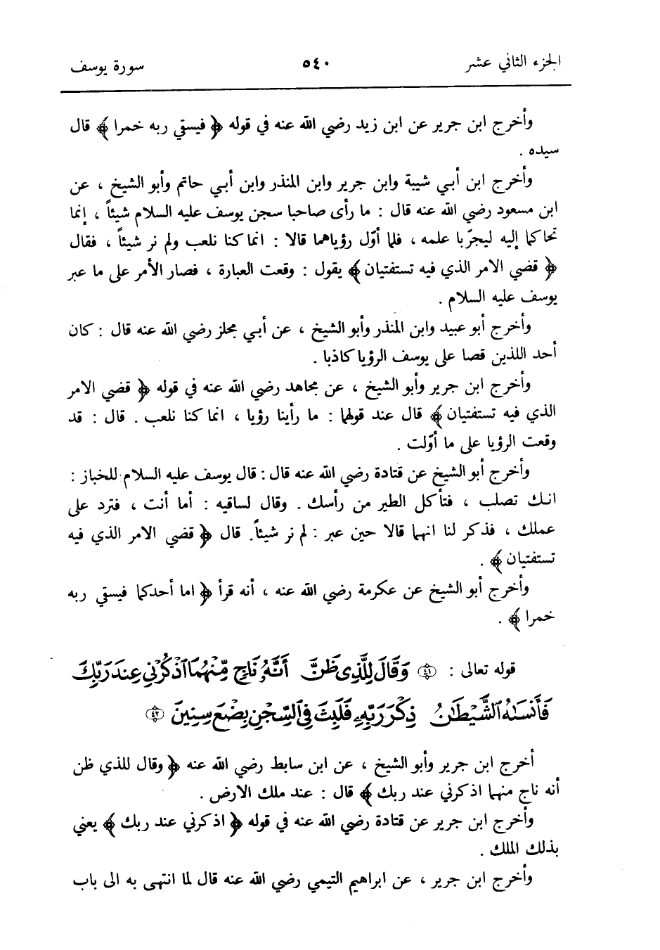 وَأخرج ابْن جرير عَن قَتَادَة رَضِي الله عَنهُ فِي قَوْله {اذْكُرْنِي عِنْد رَبك} يَعْنِي بذلك الْملك