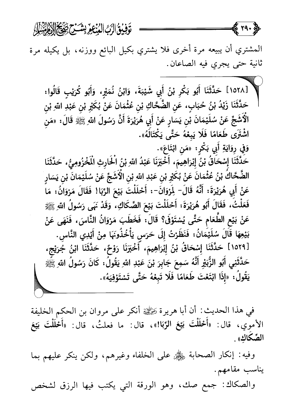 في هذا الحديث: أن أبا هريرة رضي الله عنه أنكر على مروان بن الحكم الخليفة الأموي، قال: ((أَحْلَلْتَ بَيْعَ الرِّبَا! ))، قال: ما فعلتُ، قال: ((أَحْلَلْتَ بَيْعَ الصِّكَاكِ)).