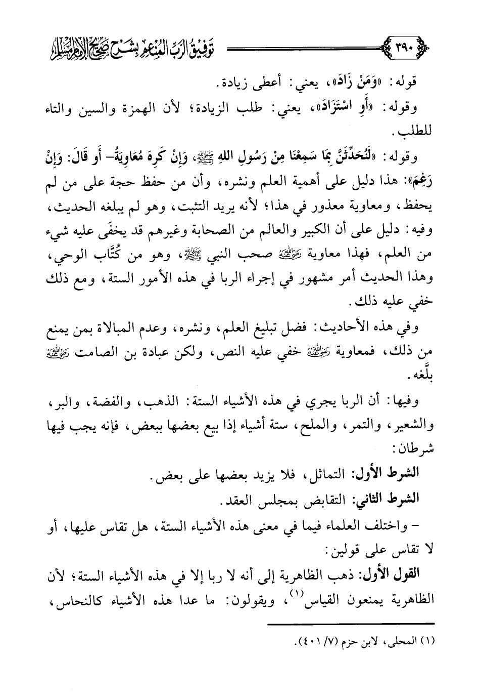 وفي هذه الأحاديث: فضل تبليغ العلم، ونشره، وعدم المبالاة بمن يمنع من ذلك، فمعاوية رضي الله عنه خفي عليه النص، ولكن عبادة بن الصامت رضي الله عنه بلَّغه.