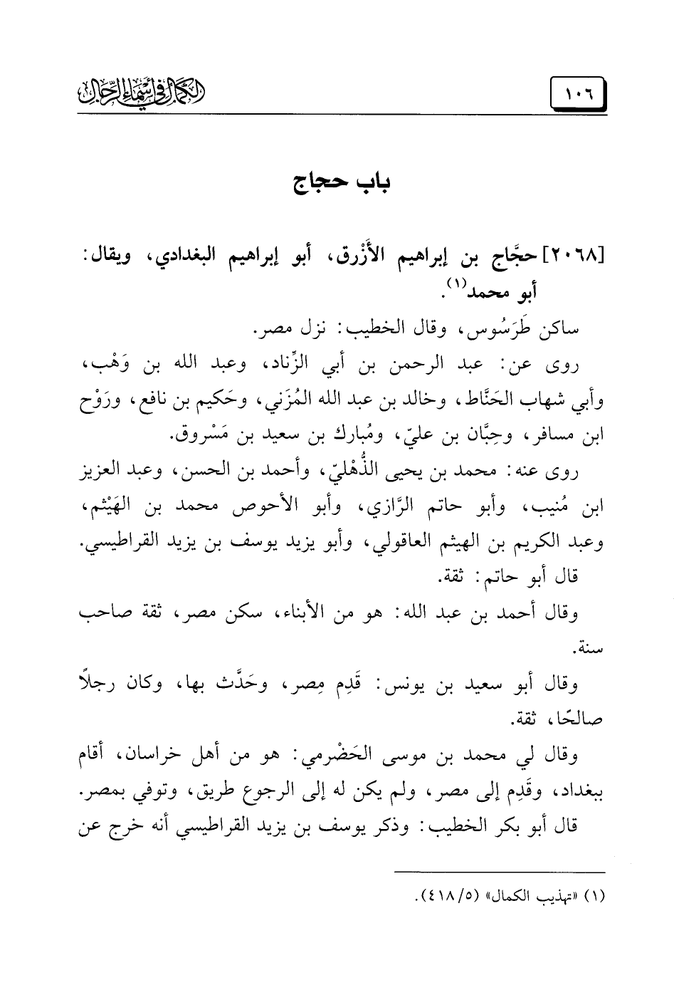 (¬١) "تهذيب الكمال" (٥/ ٤١٨).