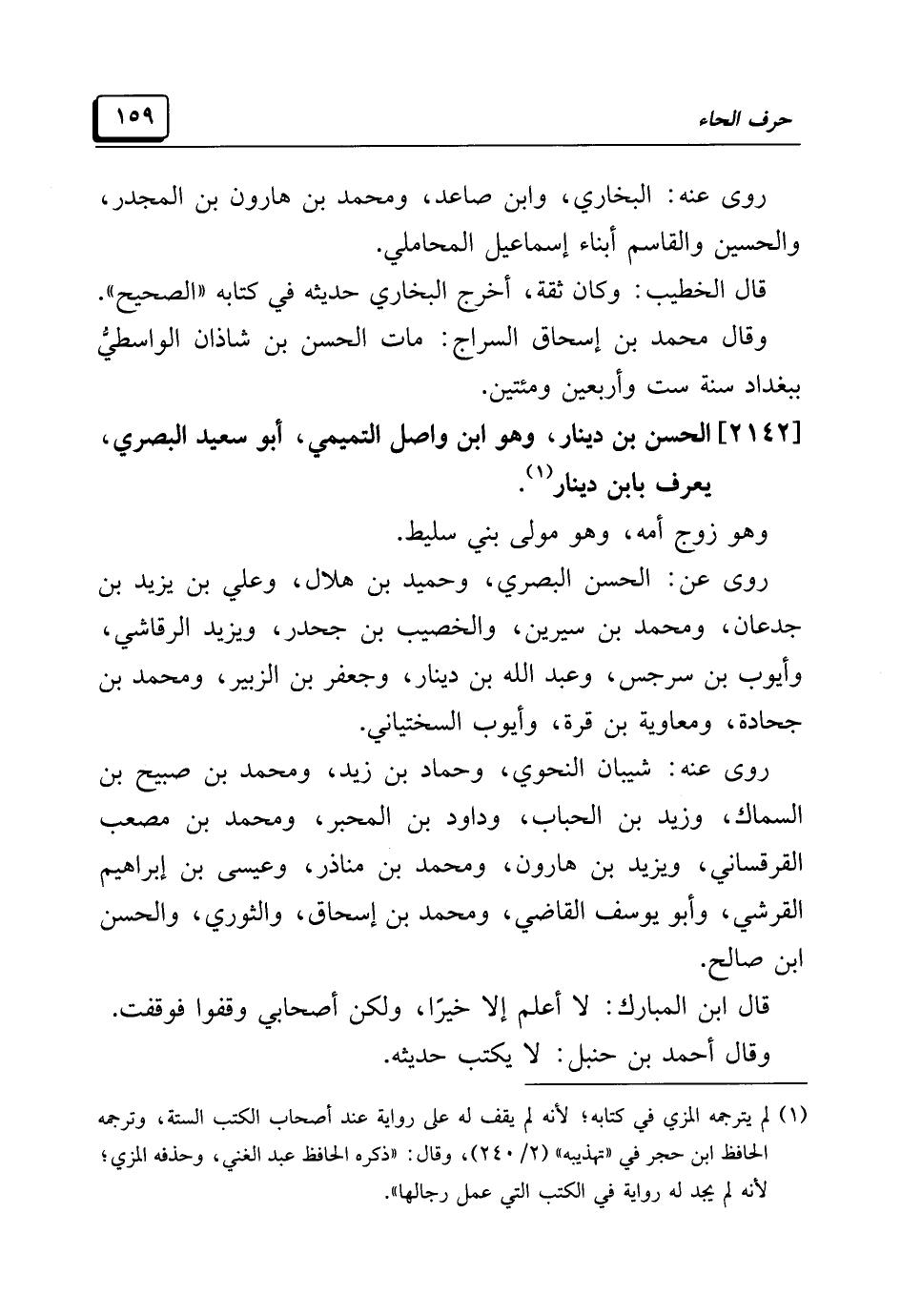 [٢١٤٢] الحسن بن دينار، وهو ابن واصل التميمي، أبو سعيد البصري، يعرف بابن دينار (¬١).